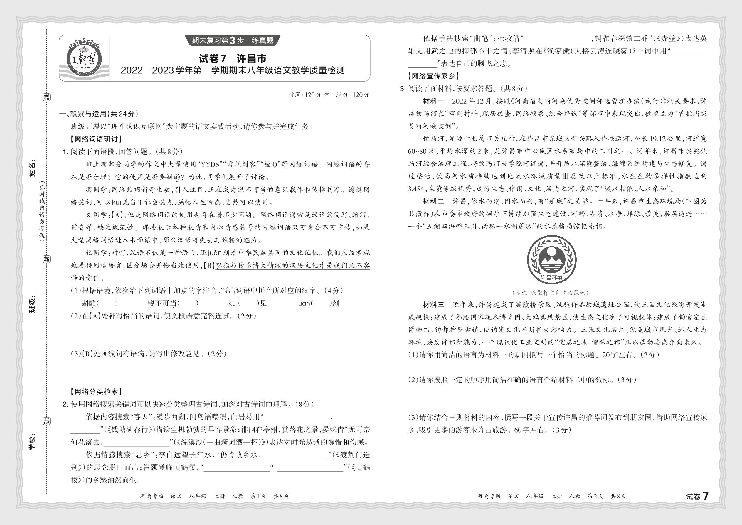 河南省许昌市2022—2023学年第一学期期末八年级语文教学质量检测(人教版)【7】