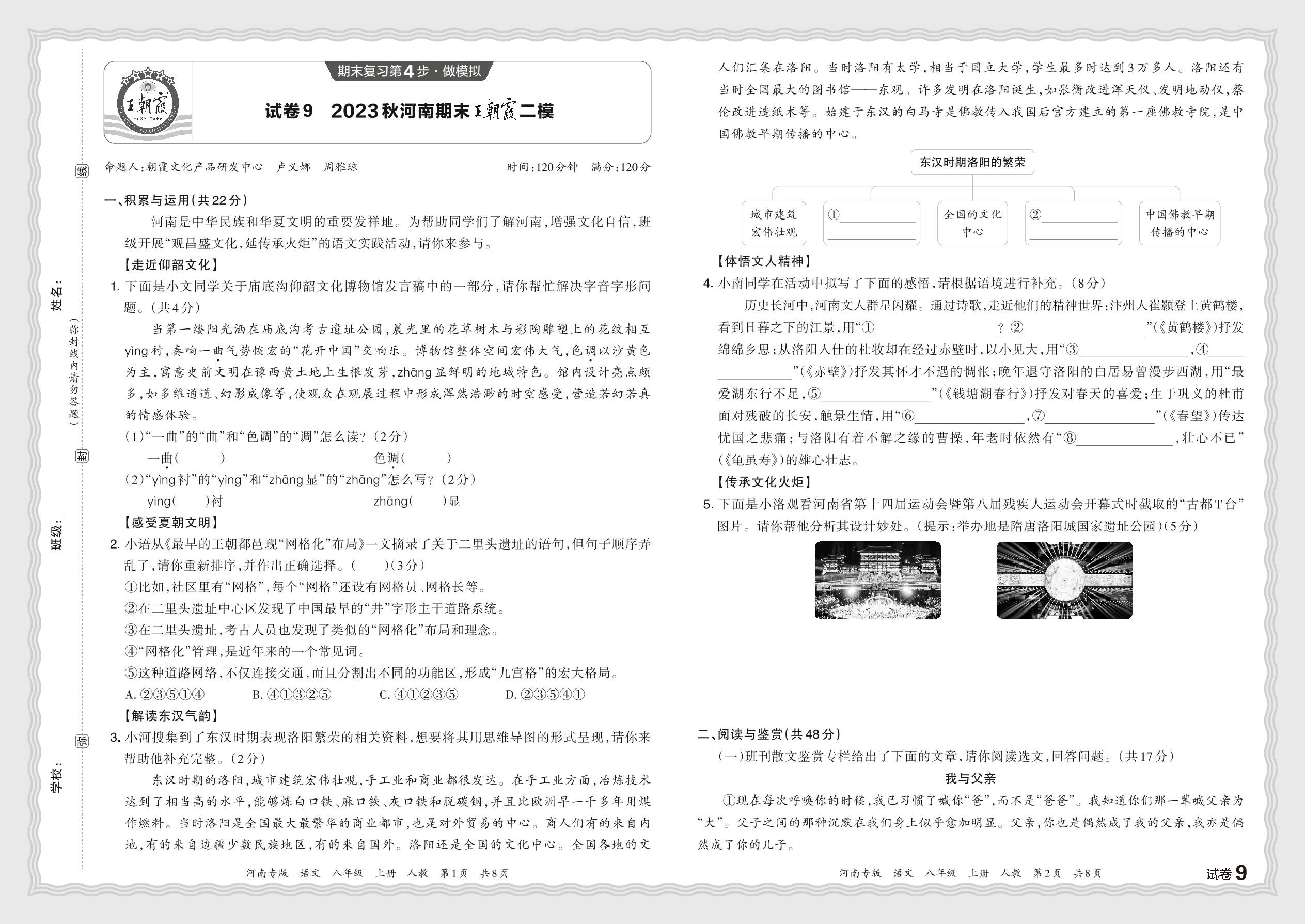 2023秋上册八年级语文人教版 河南期末王朝霞二模