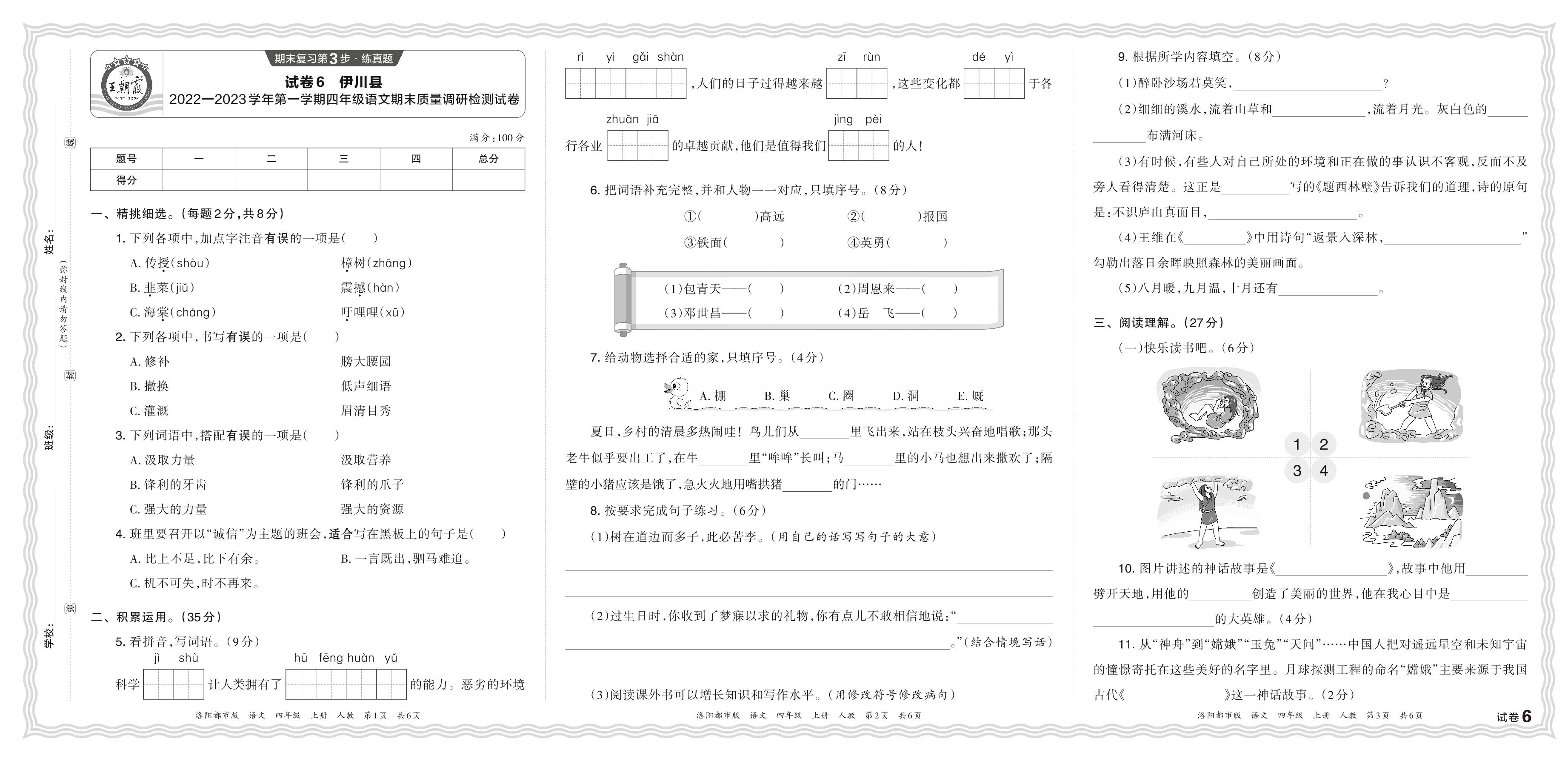 河南省洛阳市伊川县2022—2023学年第一学期四年级语文期末质量调研检测试卷(人教版)【6】