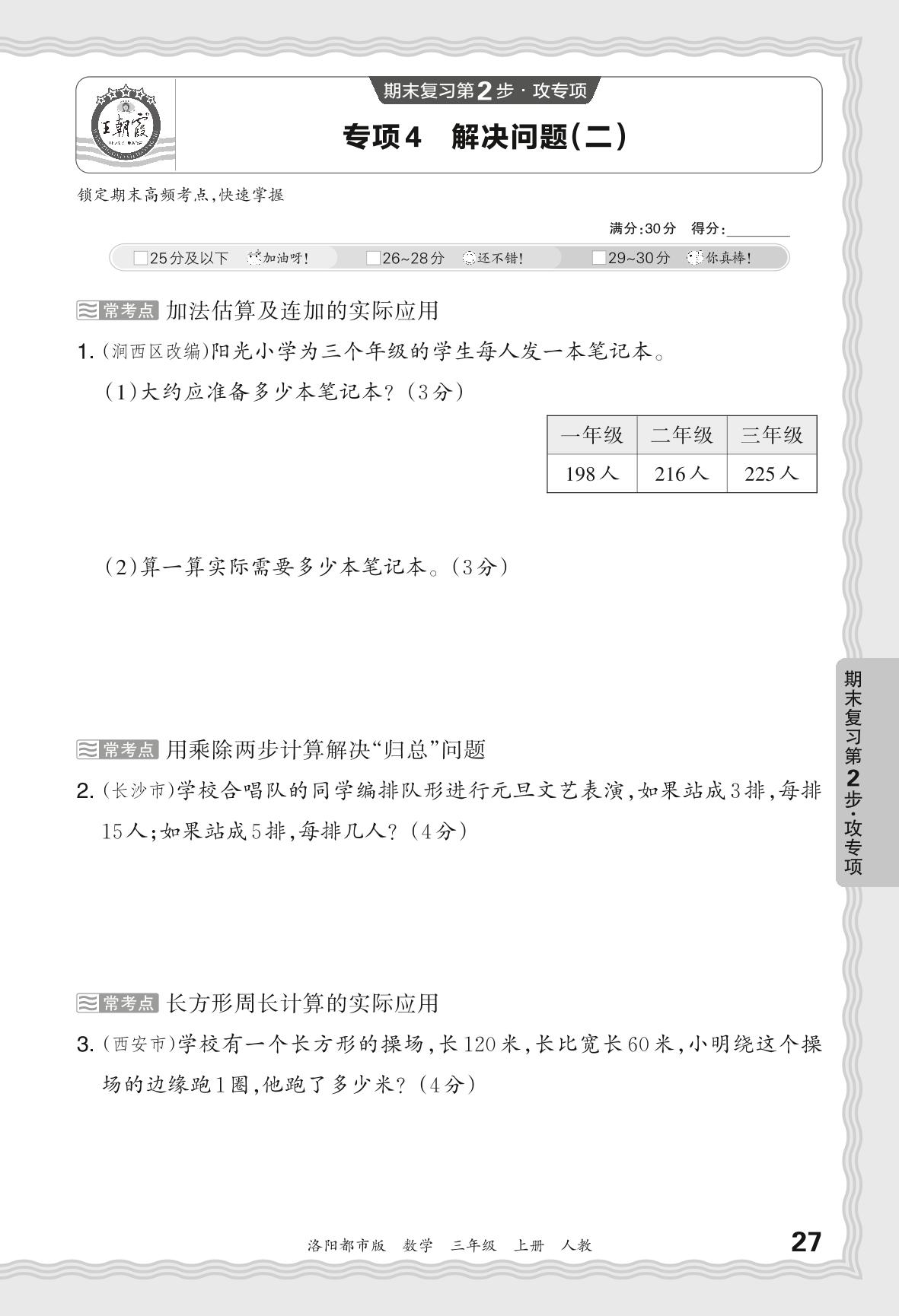 2023秋上册三年级数学人教版 期末专项卷·解决问题(二)_R231127115228236【4】