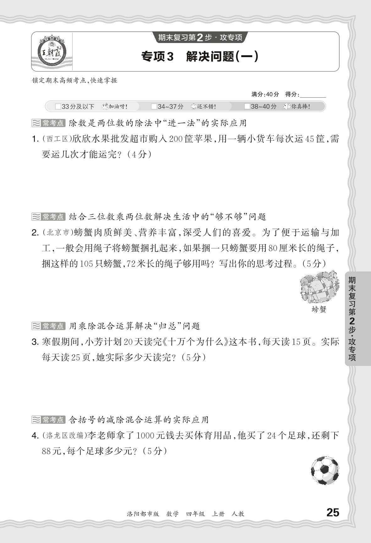 2023秋上册四年级数学人教版 期末专项卷·解决问题(一)_R231127115731132【3】