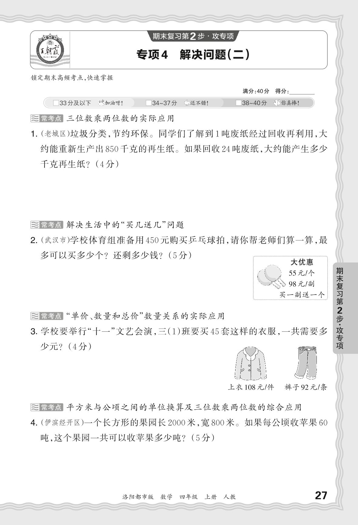 2023秋上册四年级数学人教版 期末专项卷·解决问题(二)_R231127115731482【4】