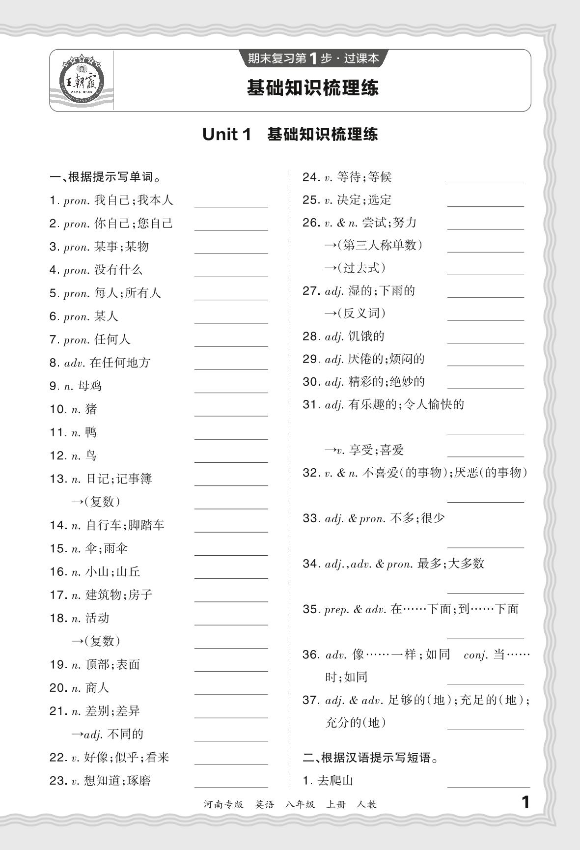 2023秋上册八年级英语人教版 期末过课本·Unit 1 基础知识梳理练_R231127133656470