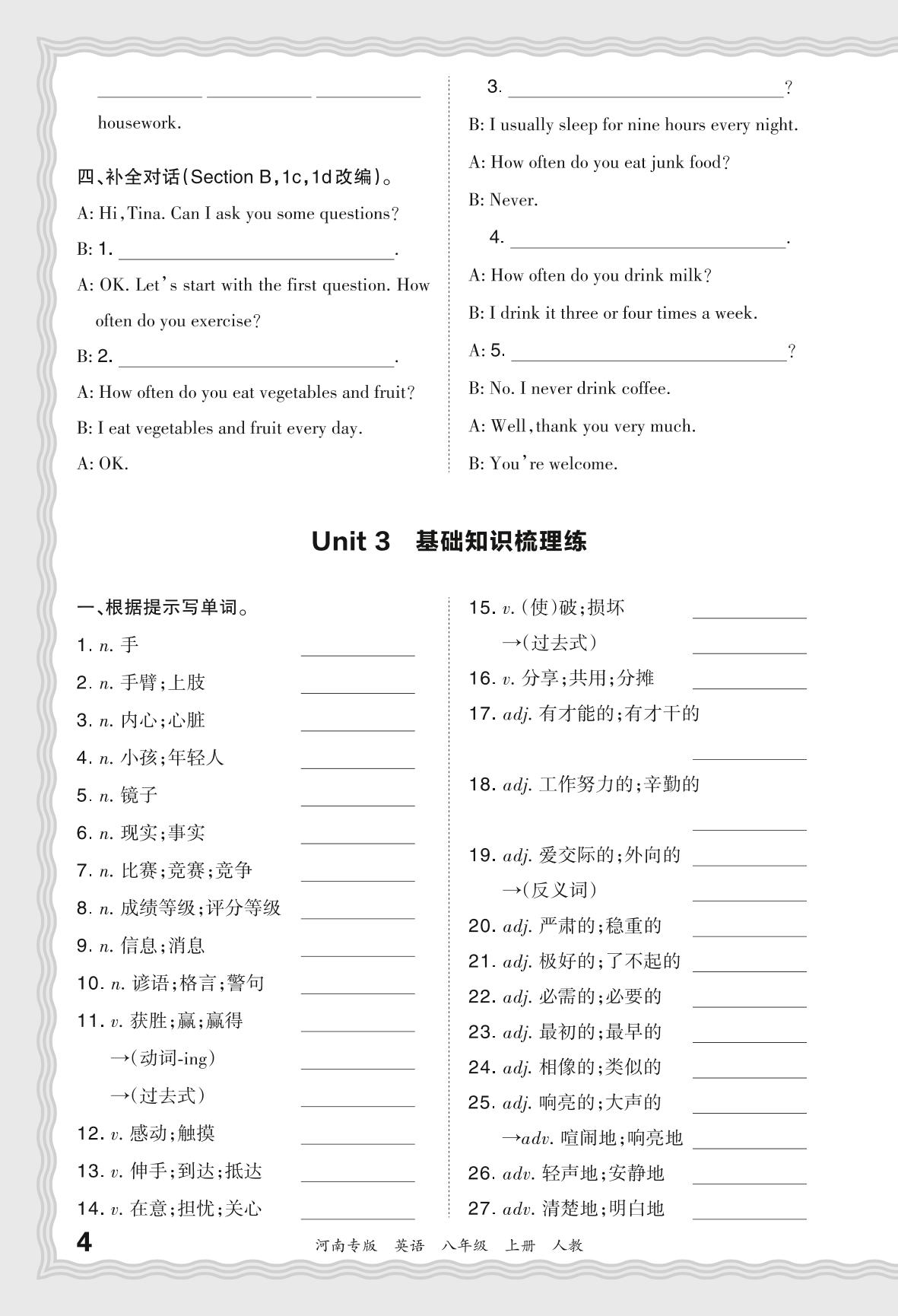 2023秋上册八年级英语人教版 期末过课本·Unit 3 基础知识梳理练_R231127133657790