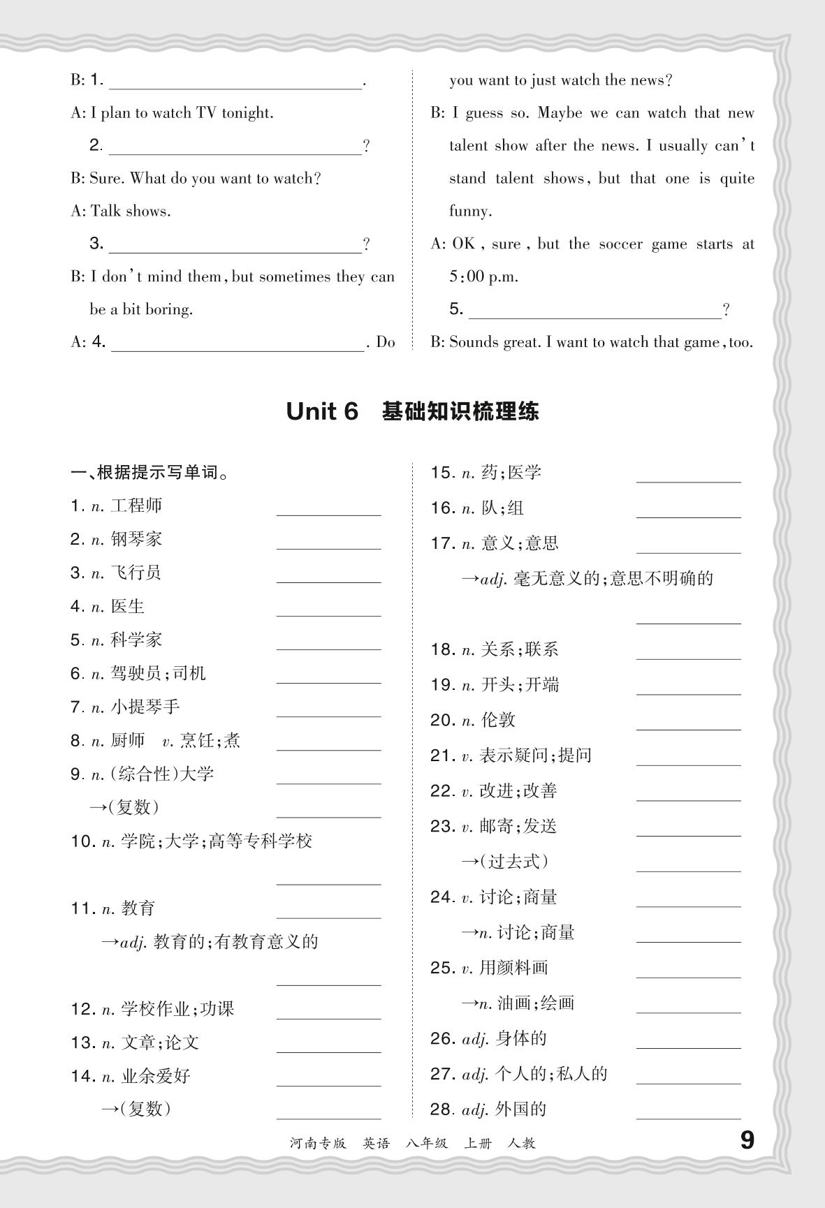 2023秋上册八年级英语人教版 期末过课本·Unit 6 基础知识梳理练_R231127133658112