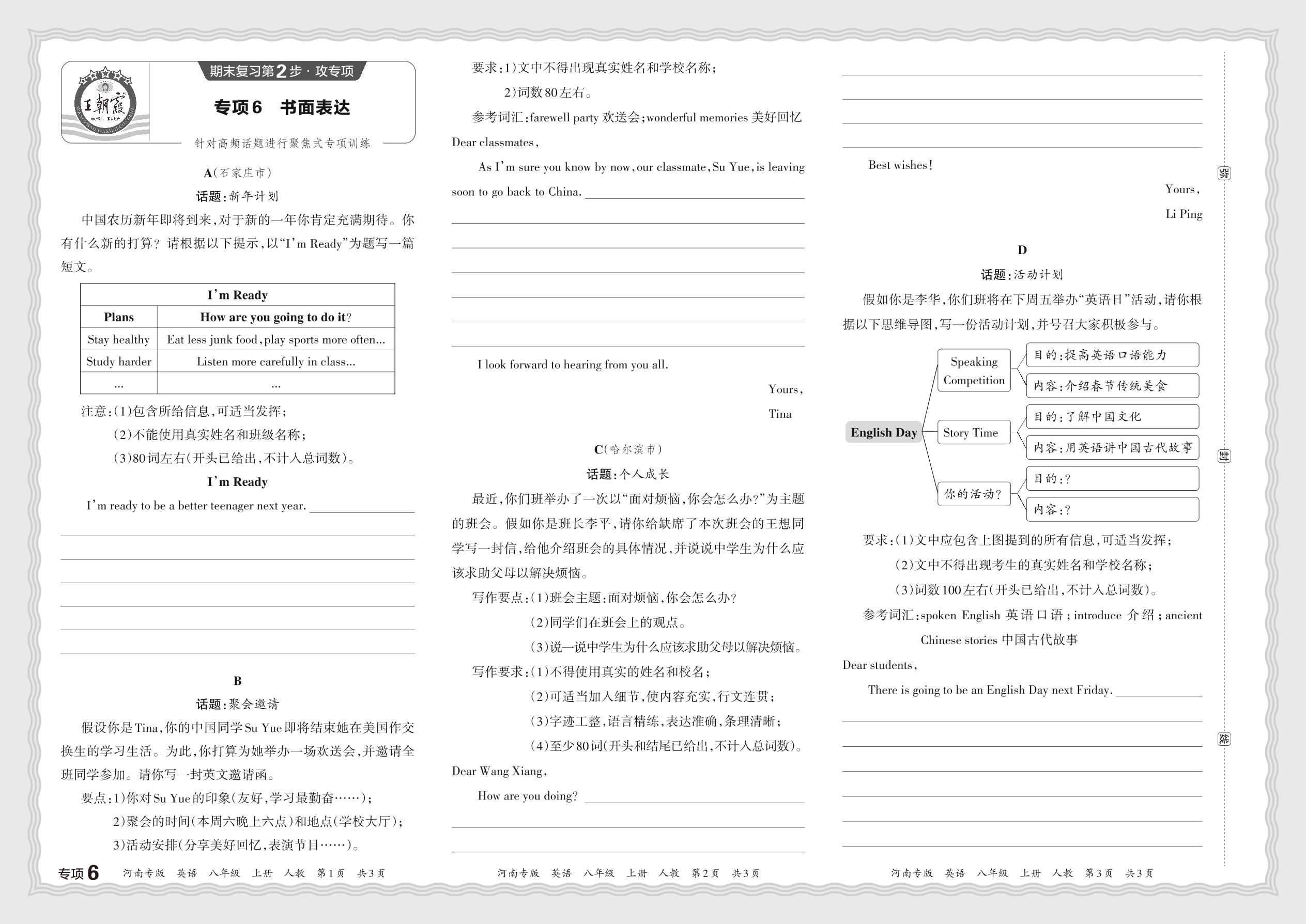 2023秋上册八年级英语人教版 期末专项卷·书面表达_R231127133700274【6】