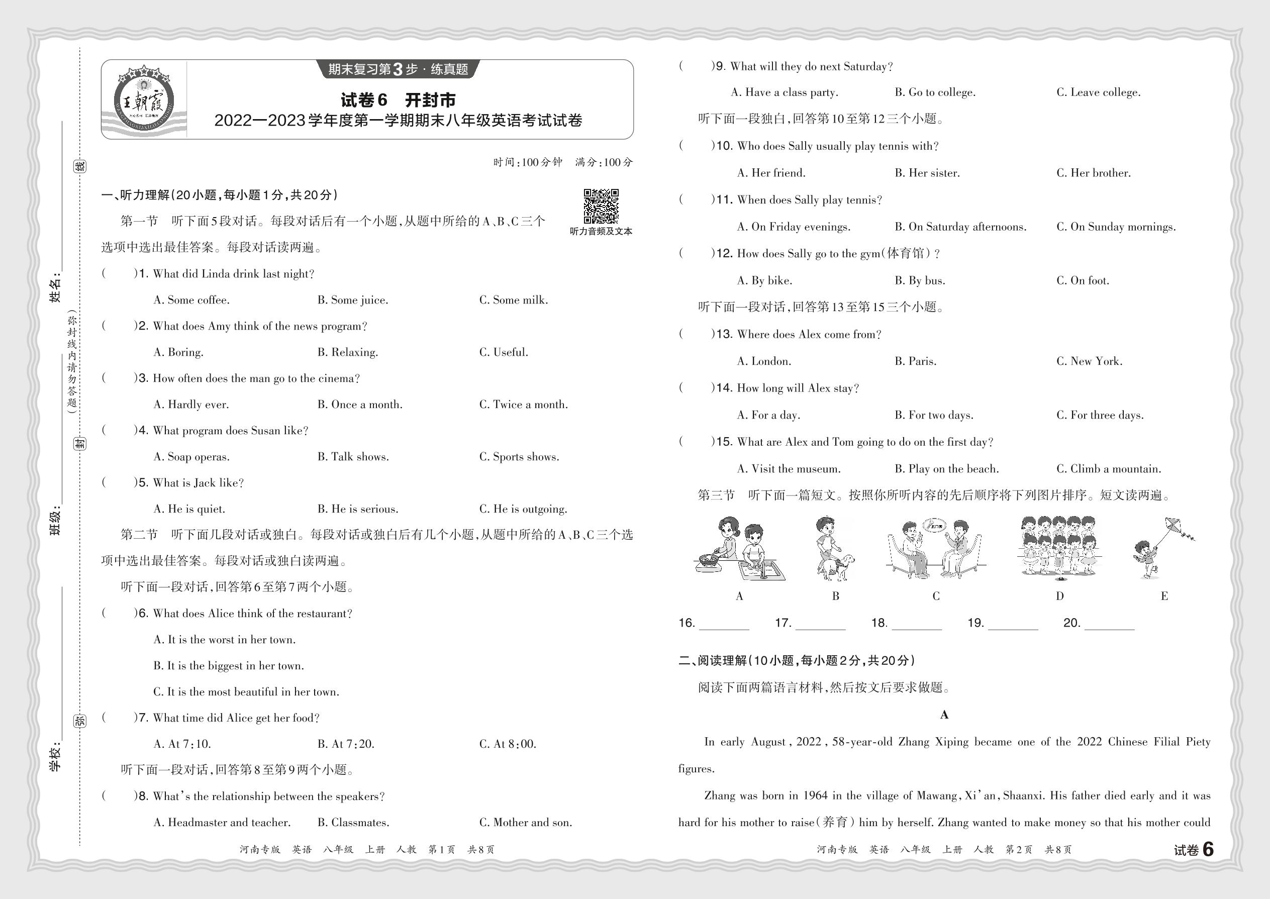 河南省开封市2022—2023学年度第一学期期末八年级英语考试试卷(人教版)【6】