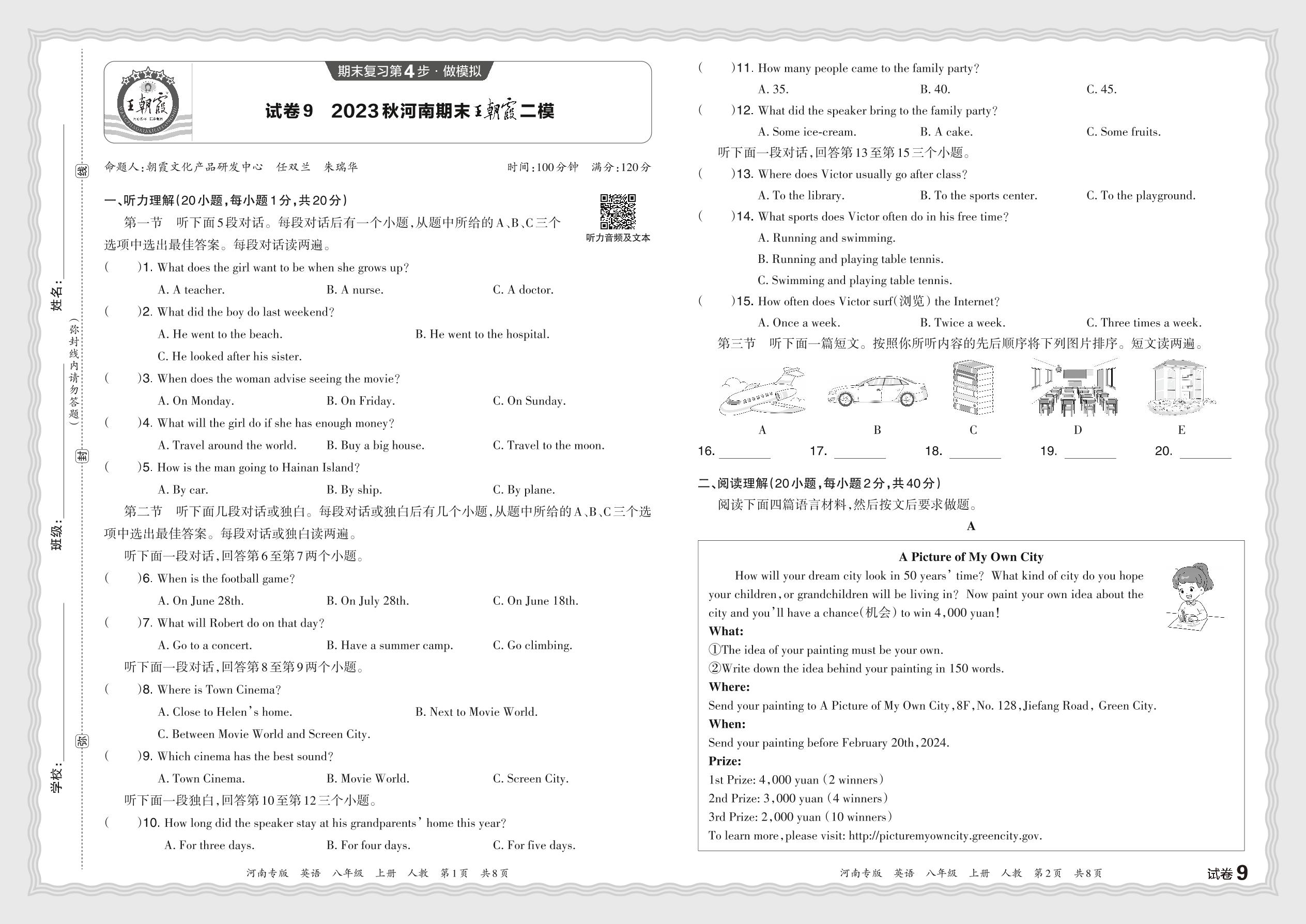 2023秋上册八年级英语人教版 河南期末王朝霞二模