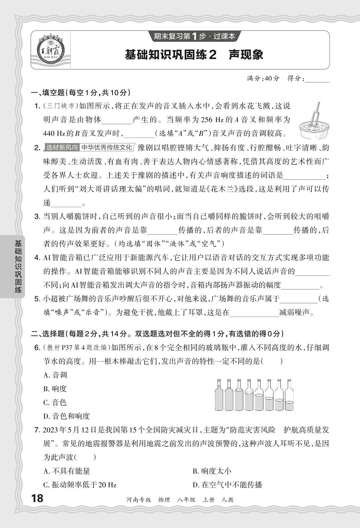 2023秋上册八年级物理人教版 期末过课本·基础知识巩固练 声现象_R231127134509106【2】