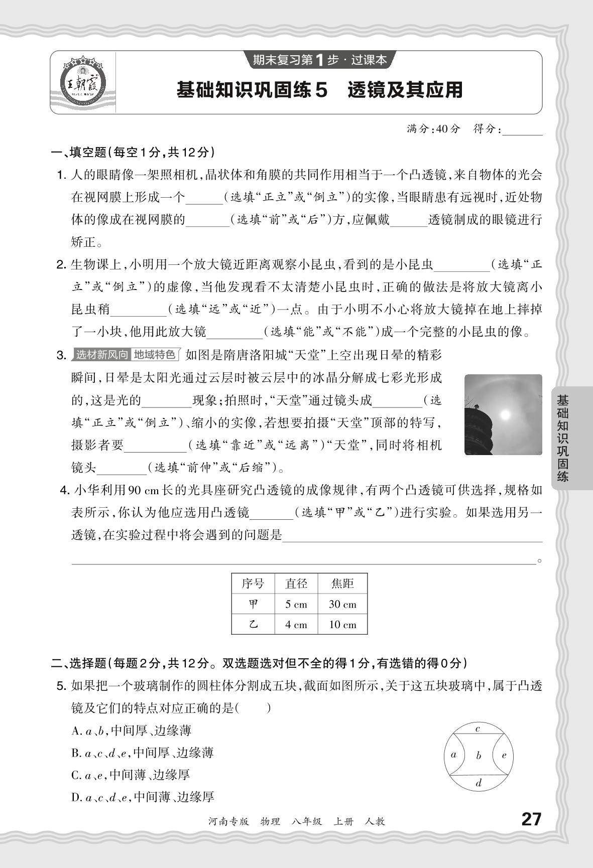2023秋上册八年级物理人教版 期末过课本·基础知识巩固练 透镜及其应用_R231127134509198【5】