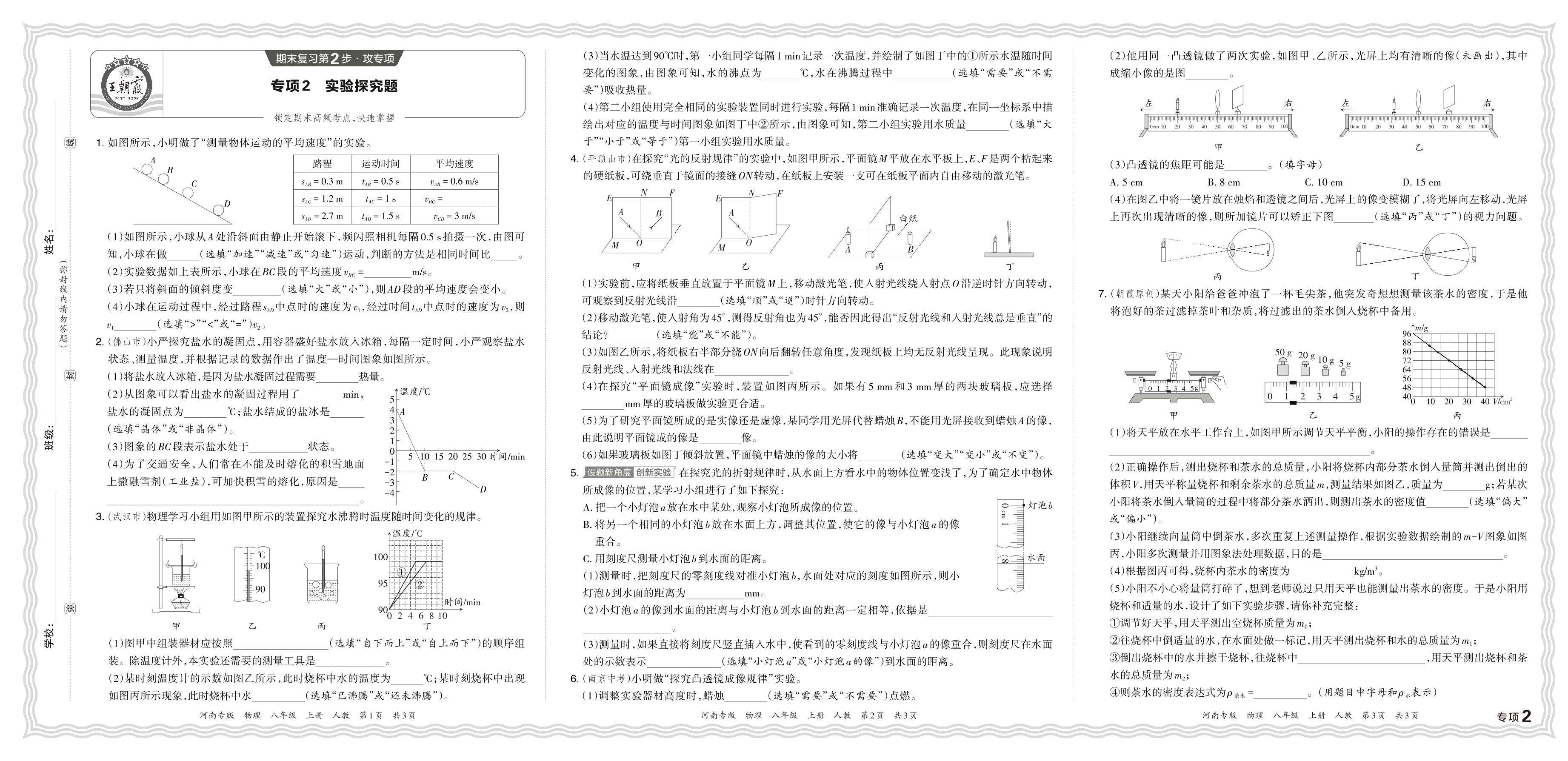 2023秋上册八年级物理人教版 期末专项卷·实验探究题【2】