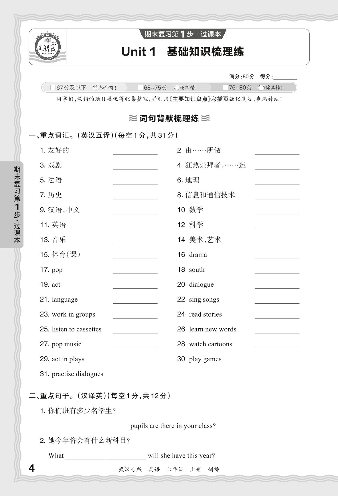 2023秋上册六年级英语剑桥版 期末过课本·Unit 1 基础知识梳理练