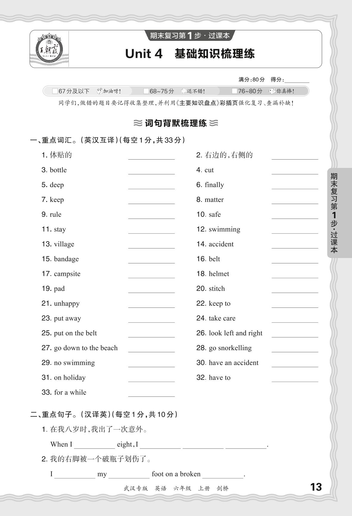 2023秋上册六年级英语剑桥版 期末过课本·Unit 4 基础知识梳理练
