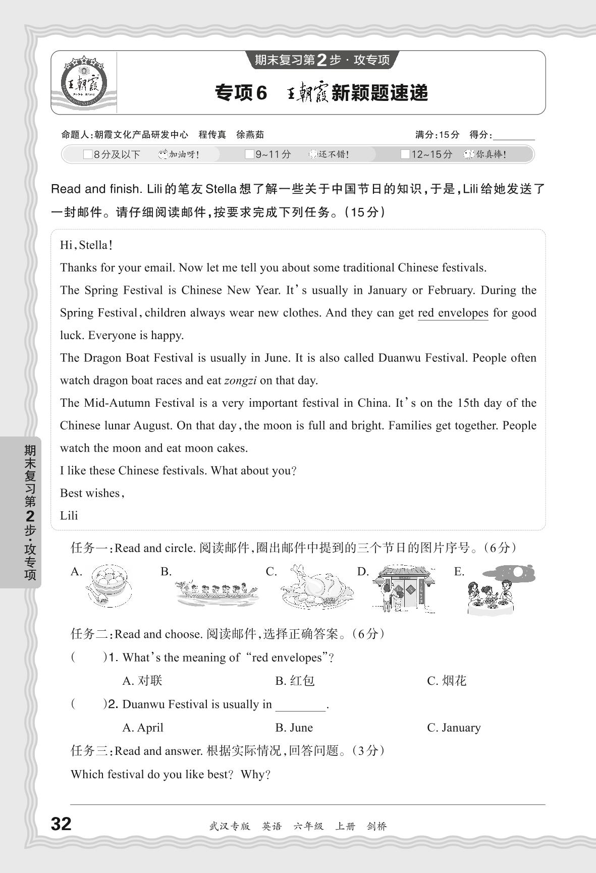 2023秋上册六年级英语剑桥版 期末专项·王朝霞新颖题速递【6】