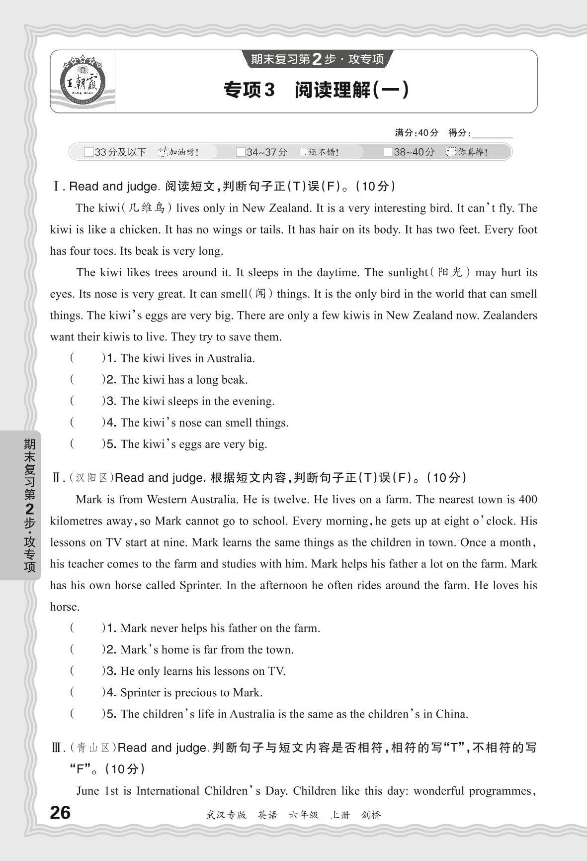 2023秋上册六年级英语剑桥版 期末专项·阅读理解(一)【3】