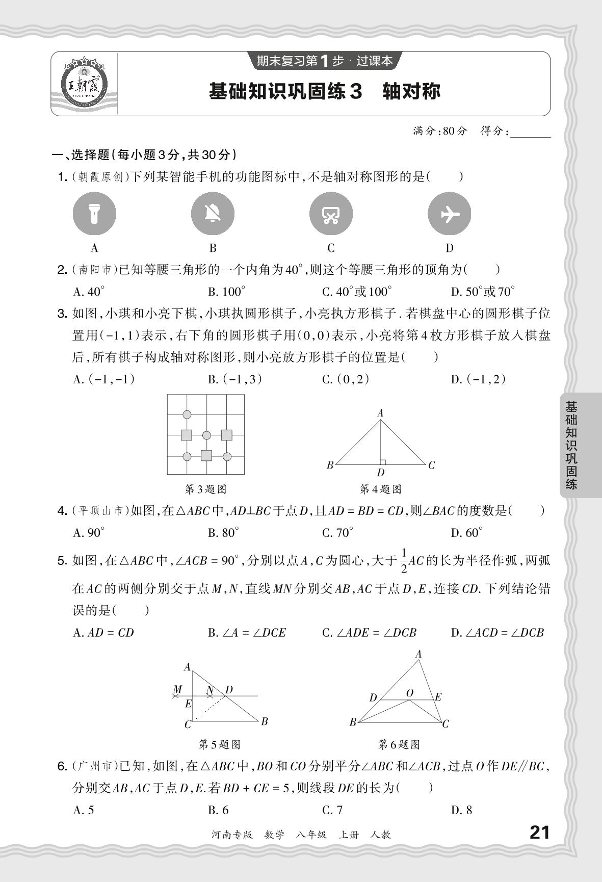 2023秋上册八年级数学人教版 期末过课本·基础知识巩固练 轴对称_R231127140046520【3】