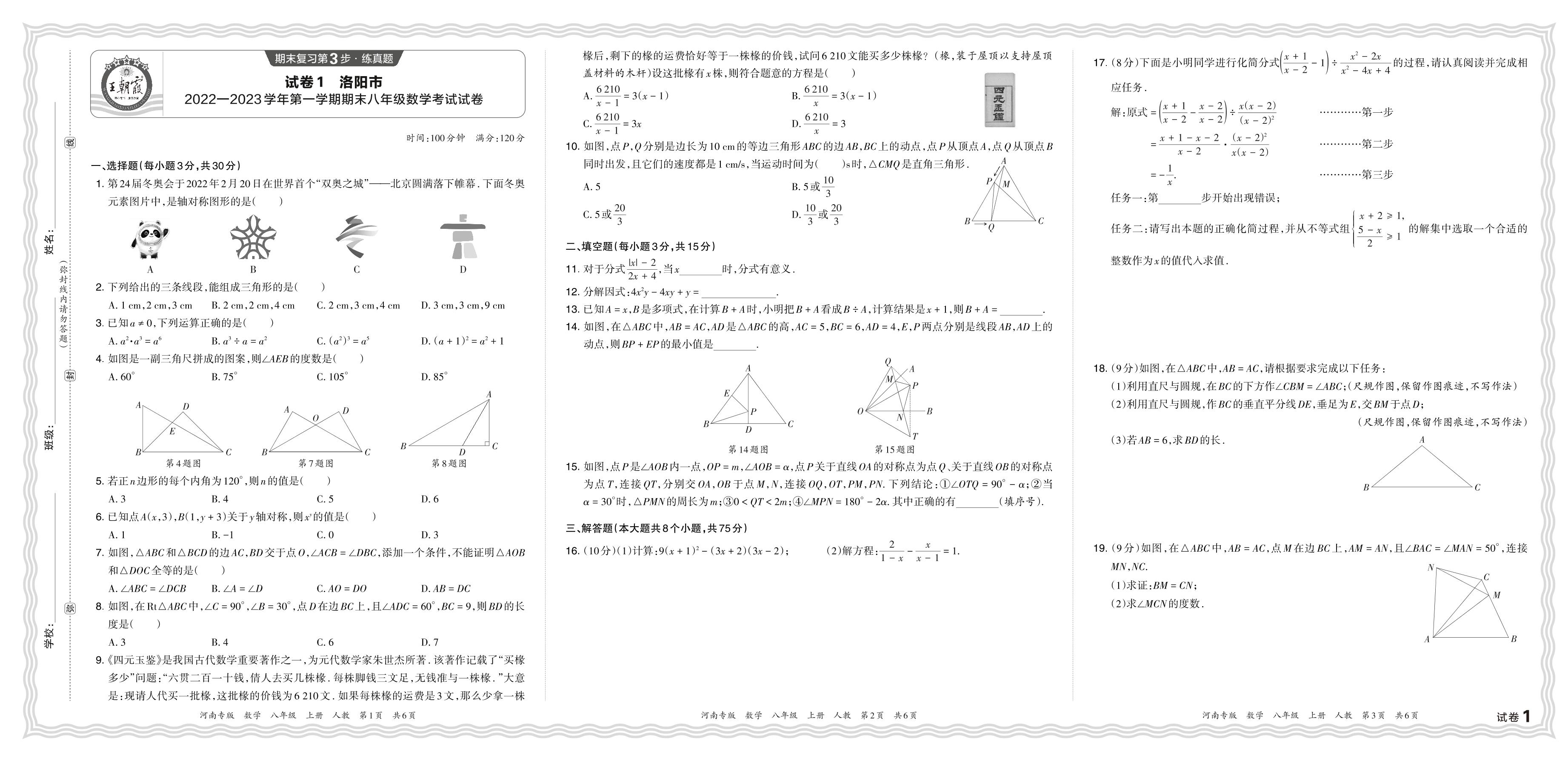 河南省洛阳市2022—2023学年第一学期期末八年级数学考试试卷(人教版)【1】