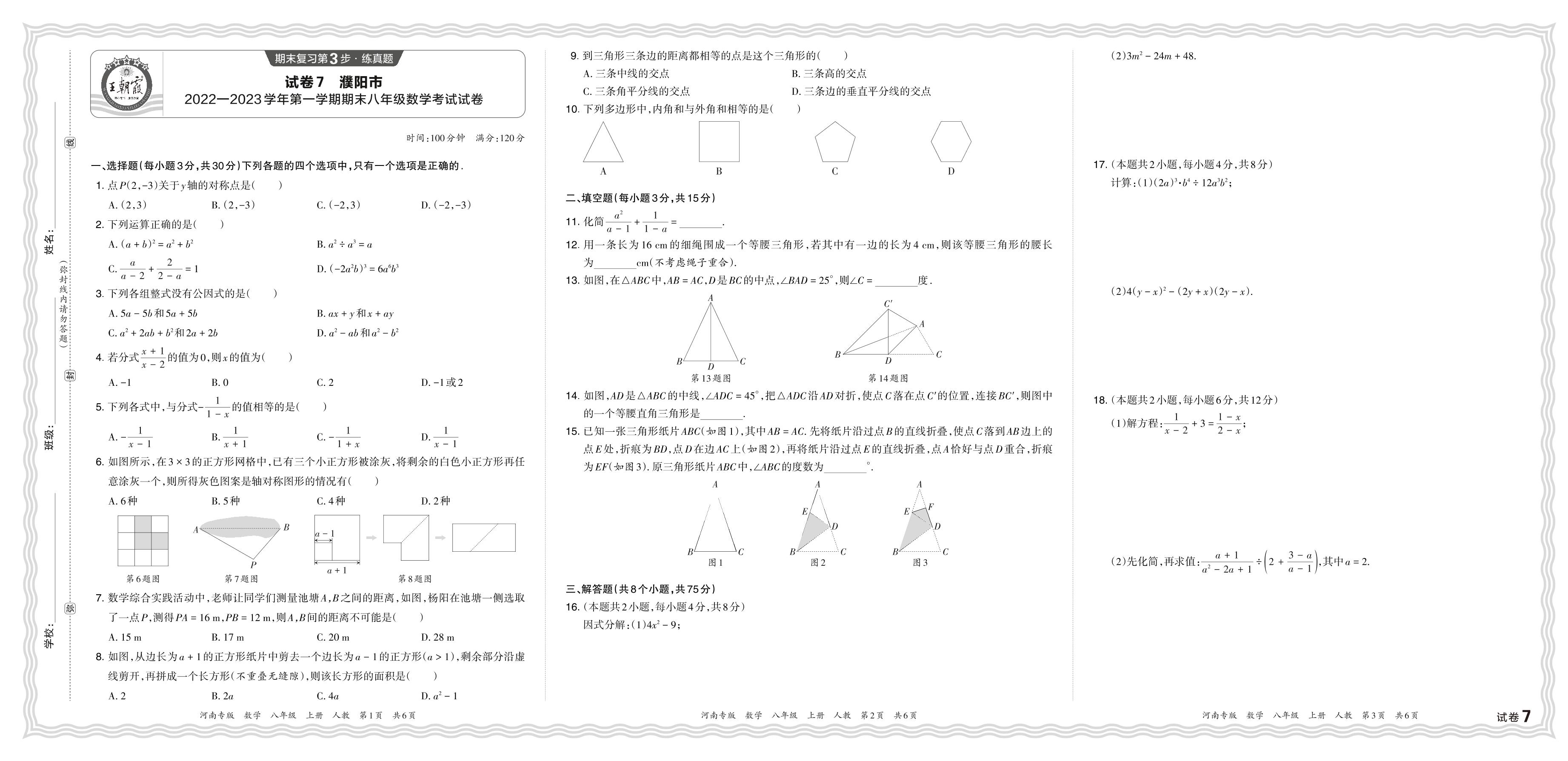 河南省濮阳市2022—2023学年第一学期期末八年级数学考试试卷(人教版)【7】
