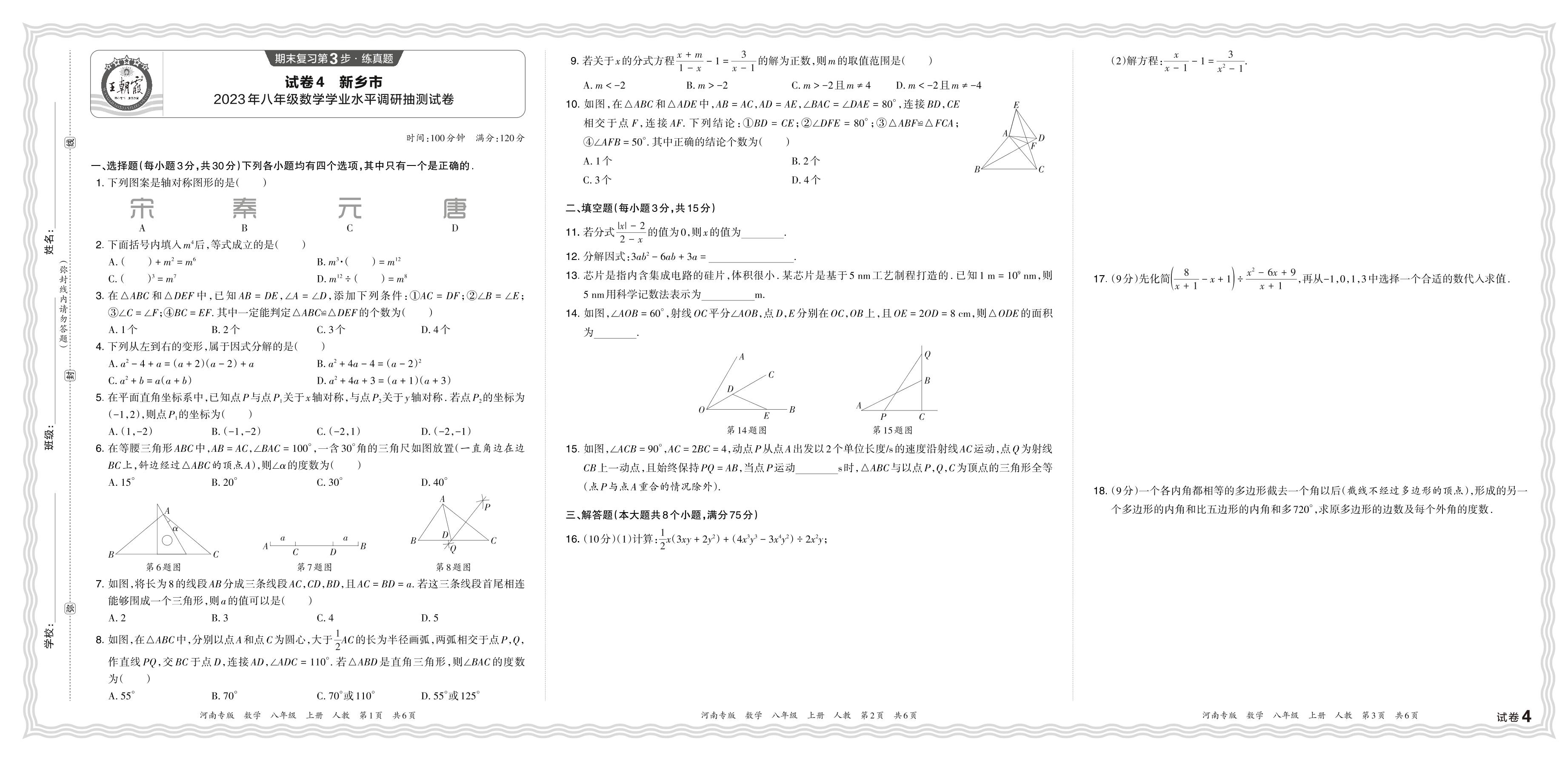 河南省新乡市2023年八年级数学学业水平调研抽测试卷(人教版)【4】