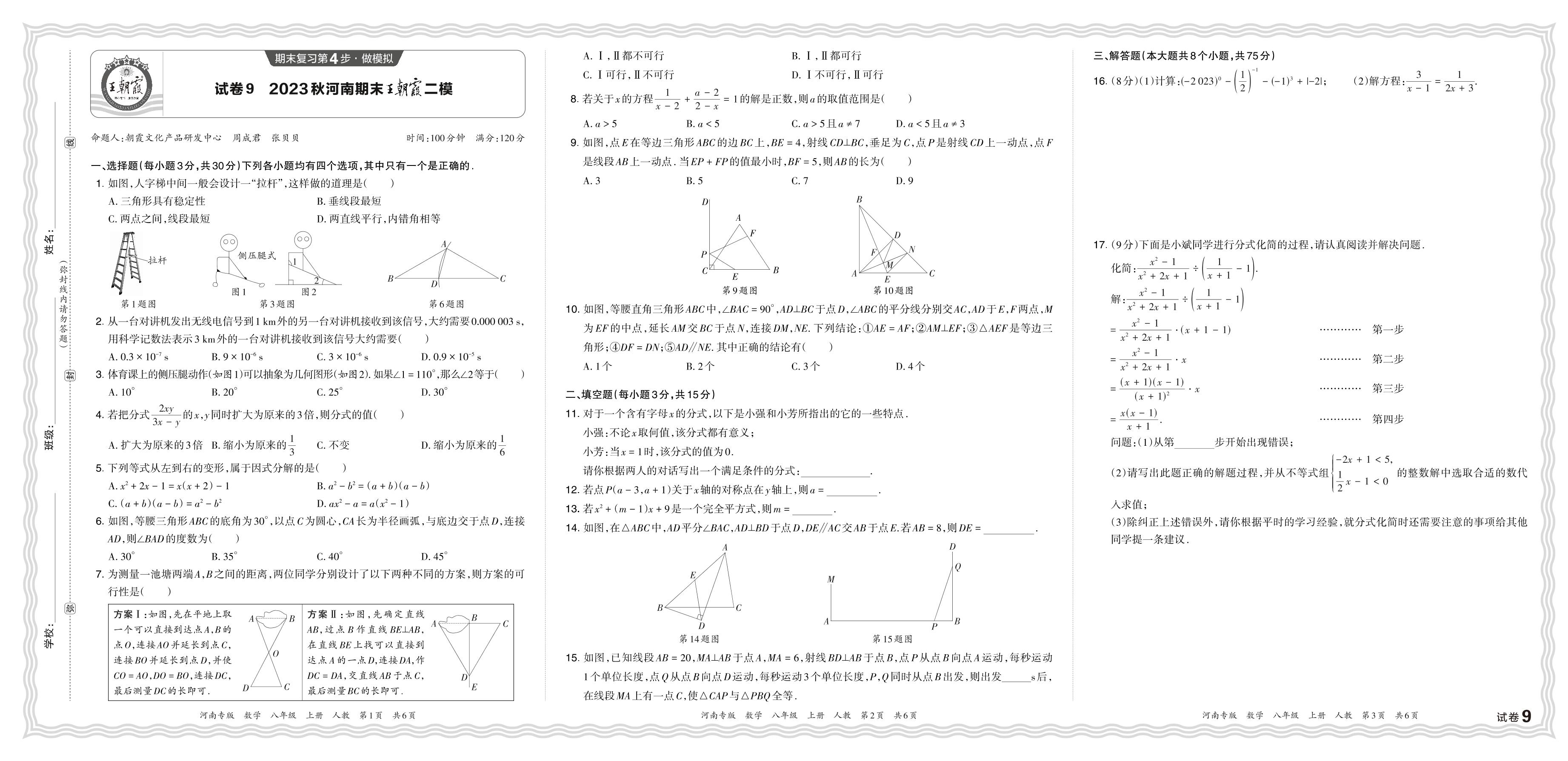 2023秋上册八年级数学人教版 河南期末王朝霞二模