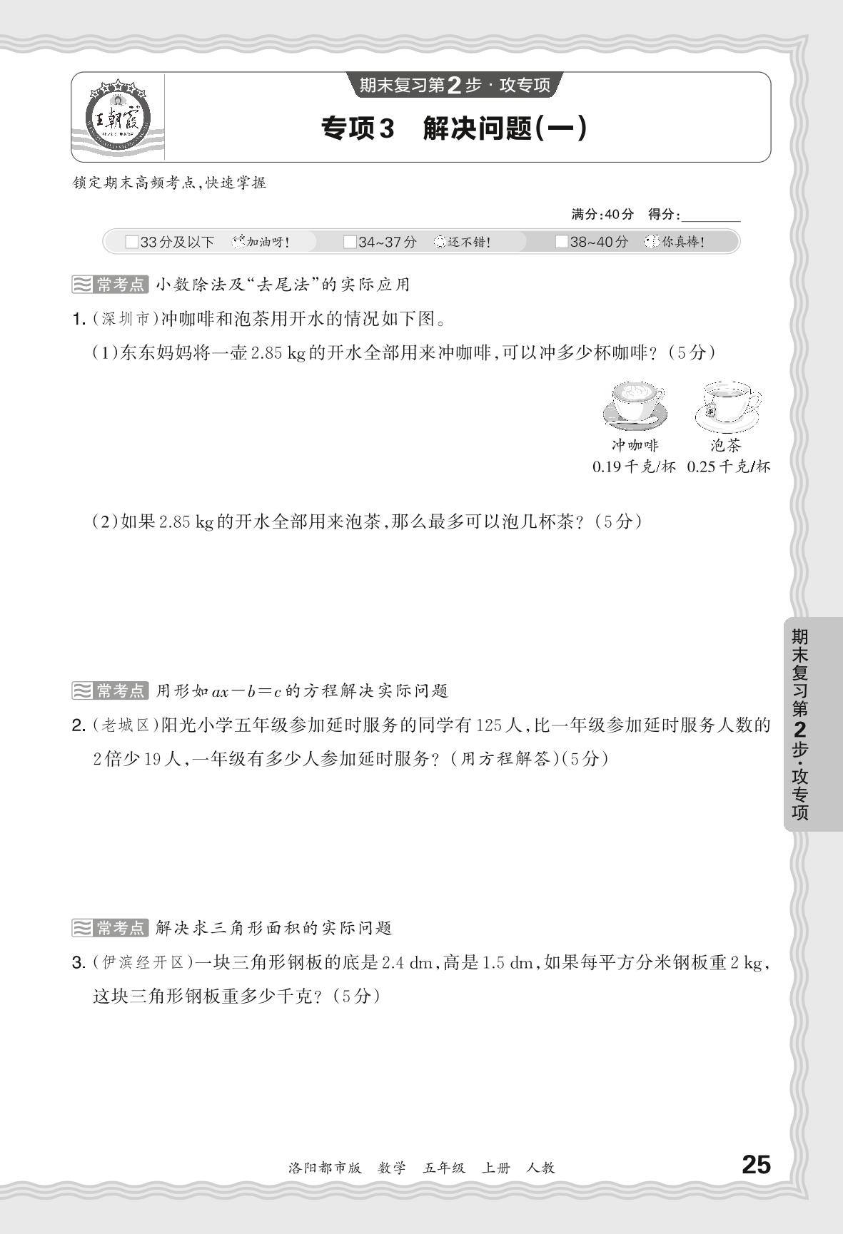 2023秋上册五年级数学人教版 期末专项卷·解决问题(一)_R231127140415415【3】