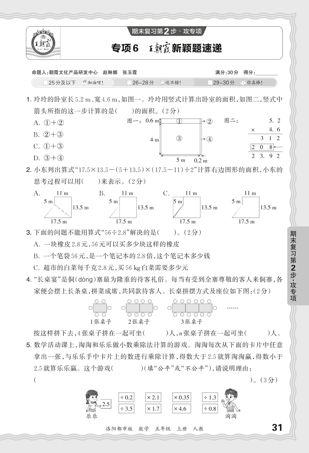 2023秋上册五年级数学人教版 期末专项卷·王朝霞新颖题速递_R231127140416624【6】