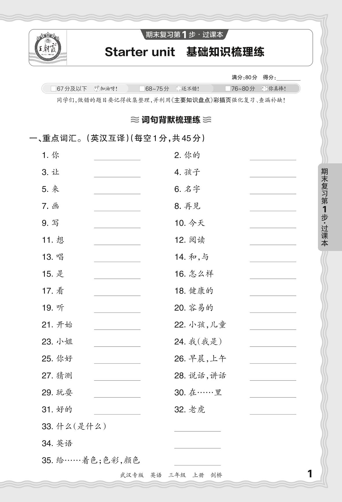 2023秋上册三年级英语剑桥版 期末过课本·Starter unit 基础知识梳理练