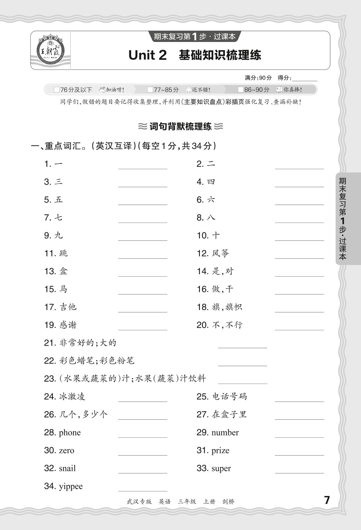 2023秋上册三年级英语剑桥版 期末过课本·Unit 2 基础知识梳理练