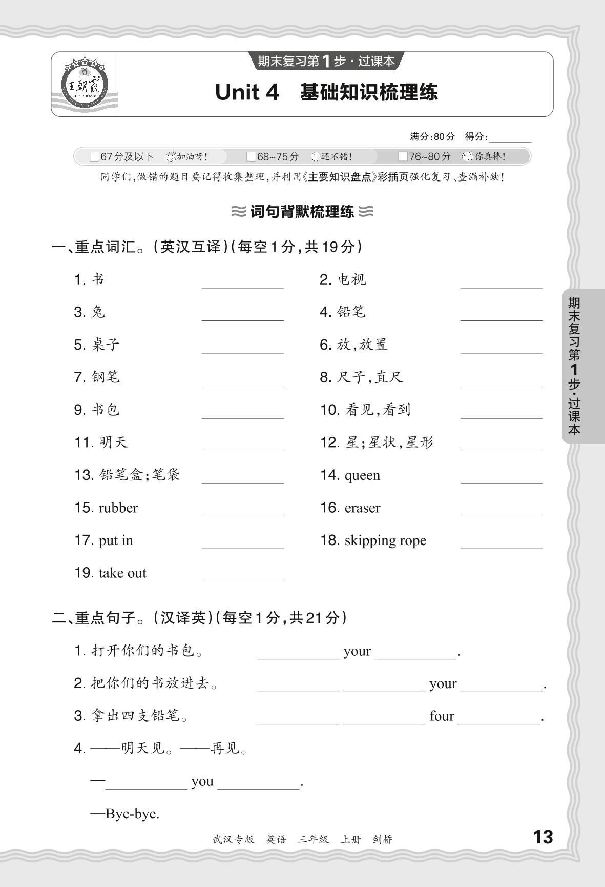 2023秋上册三年级英语剑桥版 期末过课本·Unit 4 基础知识梳理练