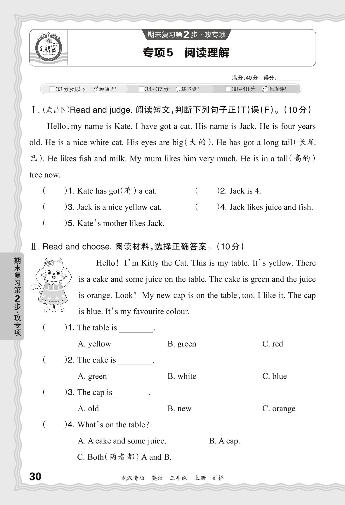 三年级英语剑桥版上册专项卷