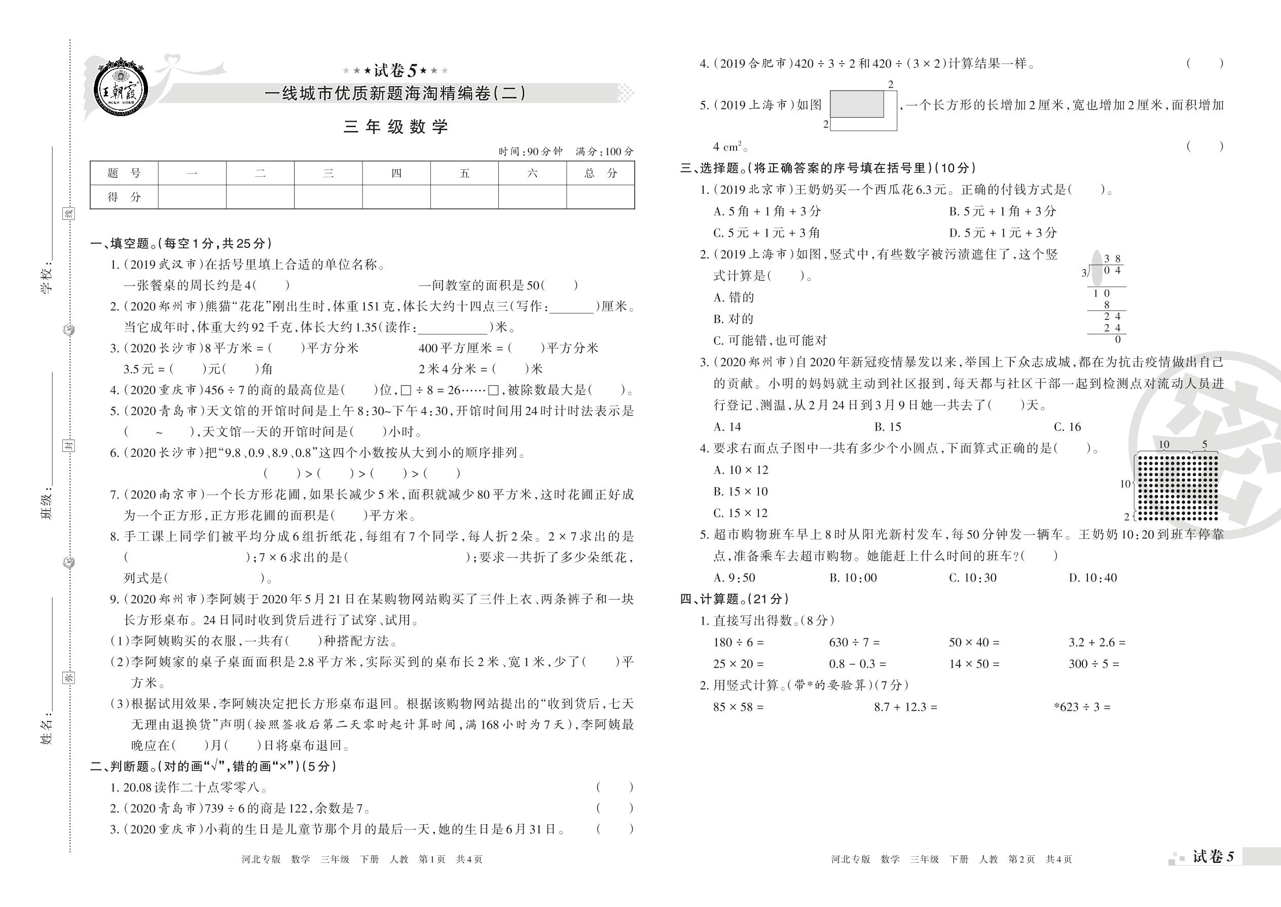 王朝霞海淘期末精编卷三年级下册数学(人教版)_R21080485540【5】
