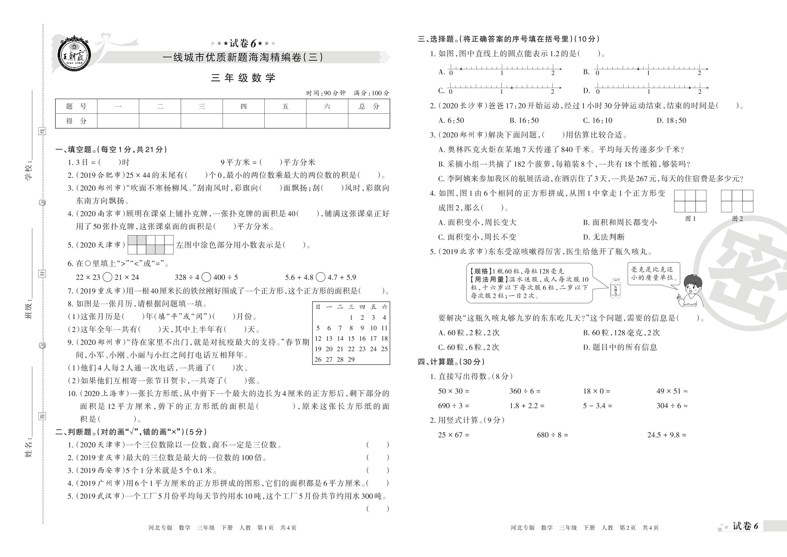 王朝霞海淘期末精编卷三年级下册数学(人教版)_R21080485551【6】