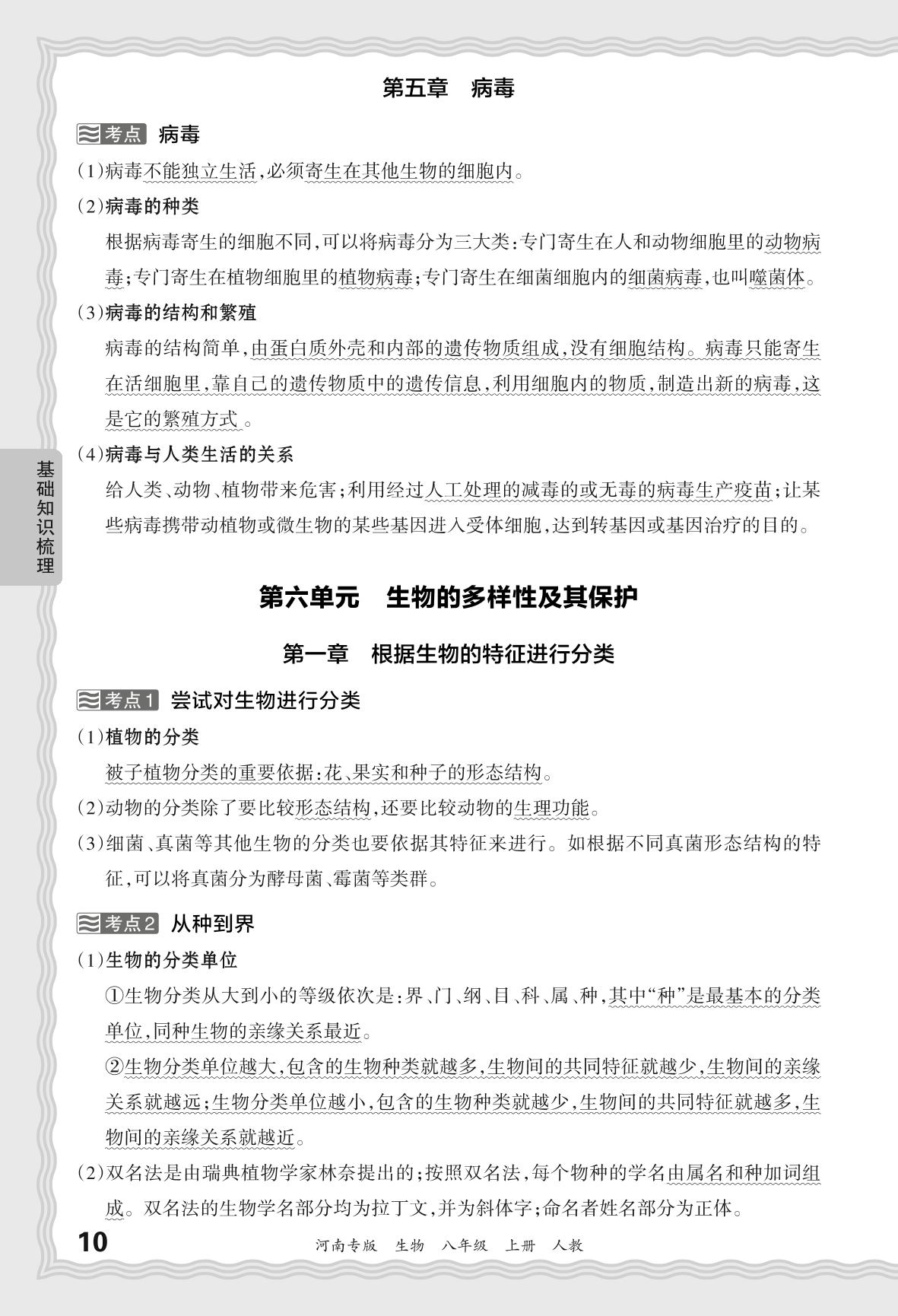 2023秋上册八年级生物人教版 期末过课本·基础知识梳理 第六单元 生物的多样性及其保护
