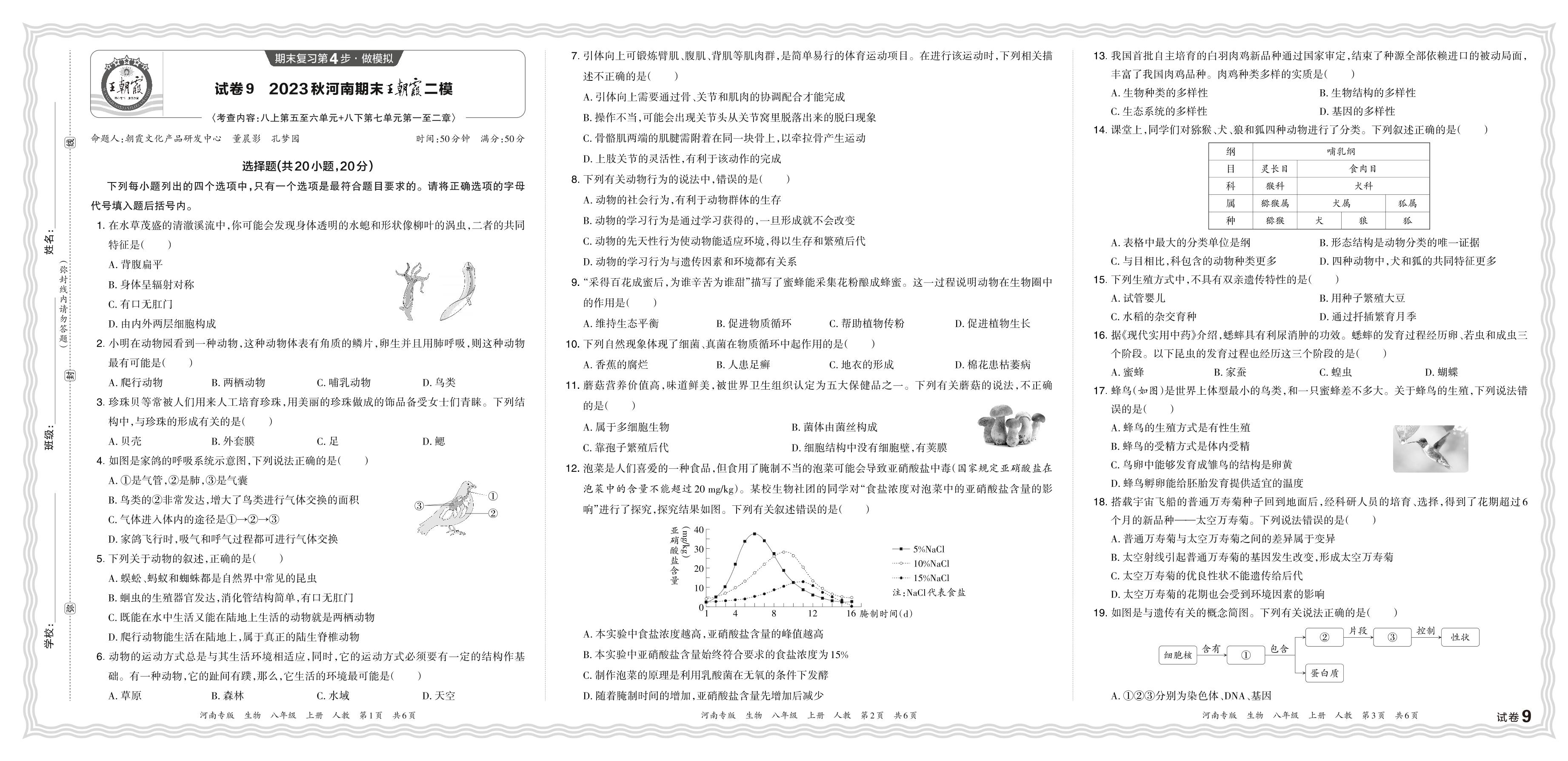 2023秋上册八年级生物人教版 河南期末王朝霞二模