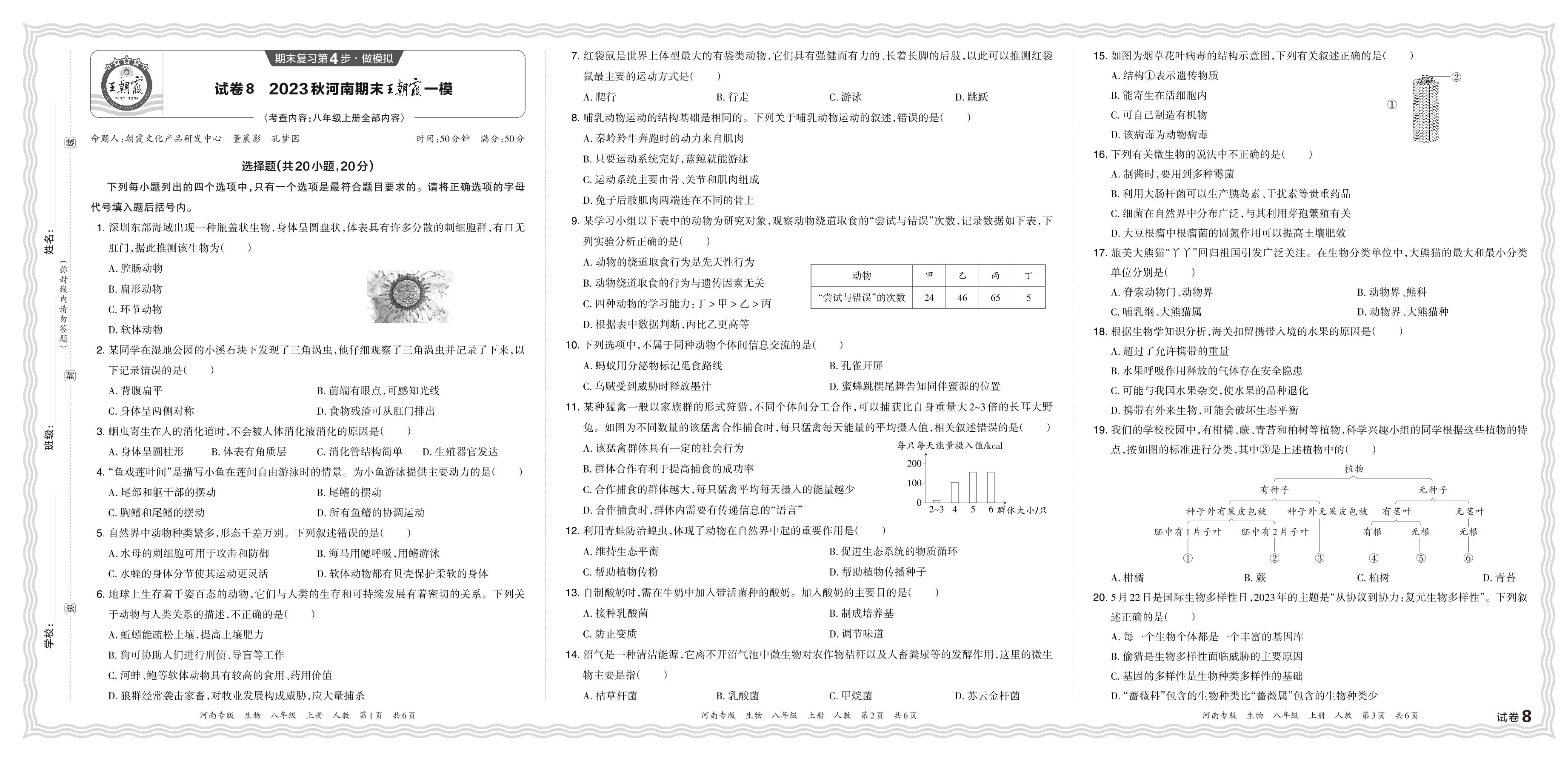 2023秋上册八年级生物人教版 河南期末王朝霞一模