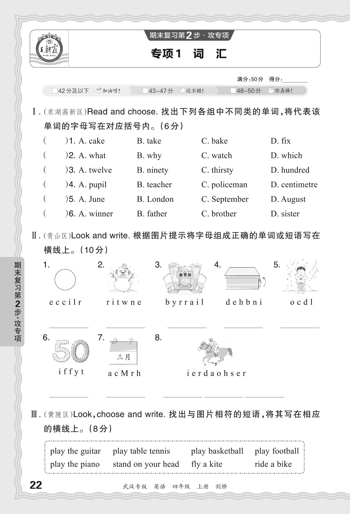 2023秋上册四年级英语剑桥版 期末专项·词汇【1】