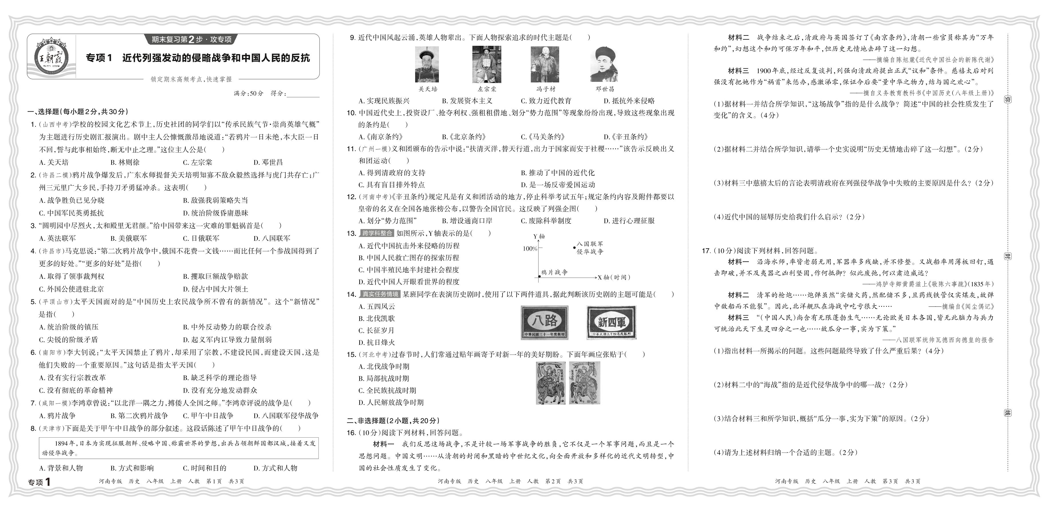 2023秋上册八年级历史人教版 期末专项卷·近代列强发动的侵略战争和中国人民的反抗_R231127141528547【1】