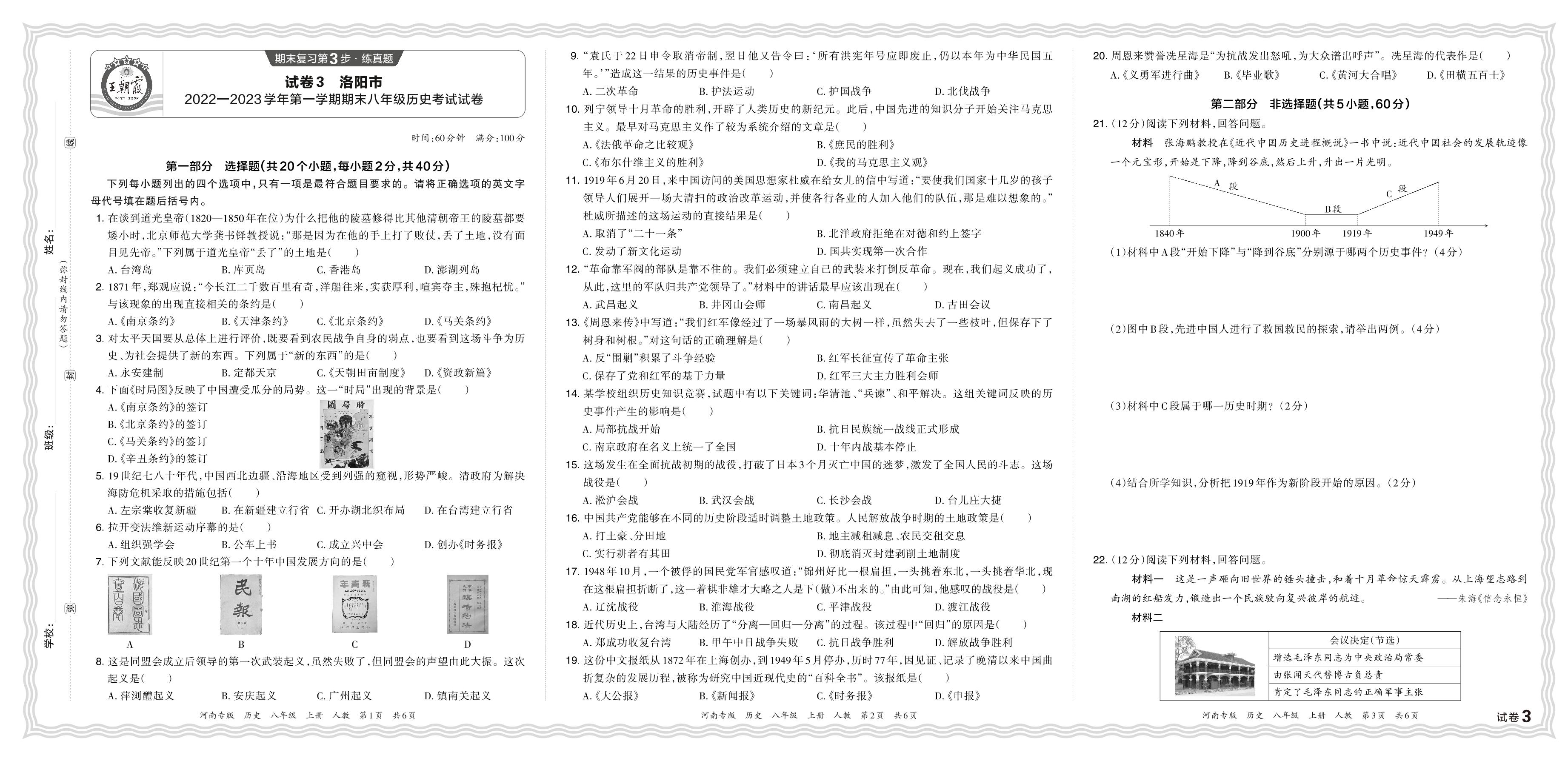 河南省洛阳市2022—2023学年第一学期期末八年级历史考试试卷(人教版)【3】