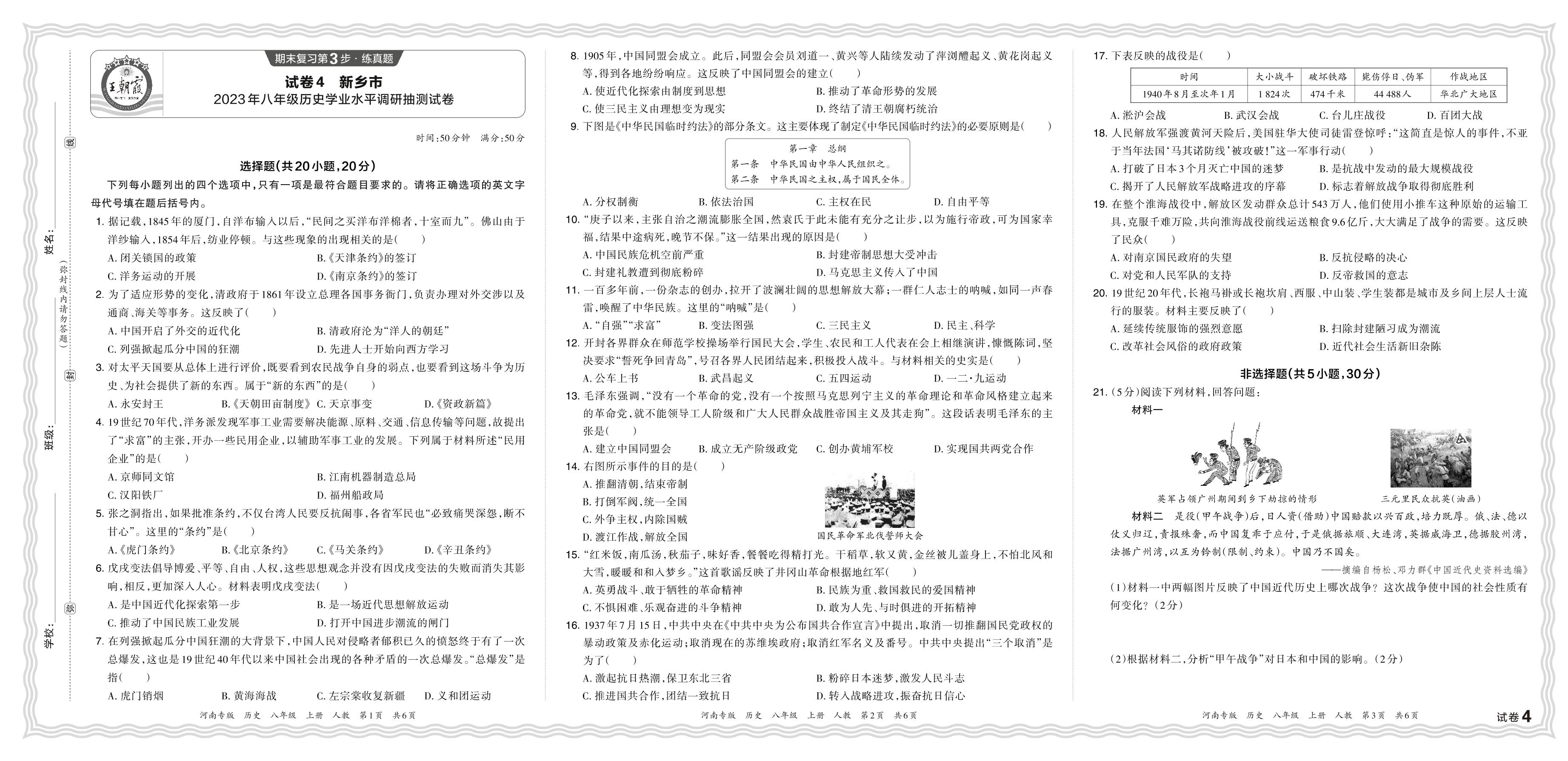河南省新乡市2023年八年级历史学业水平调研抽测试卷(人教版)【4】