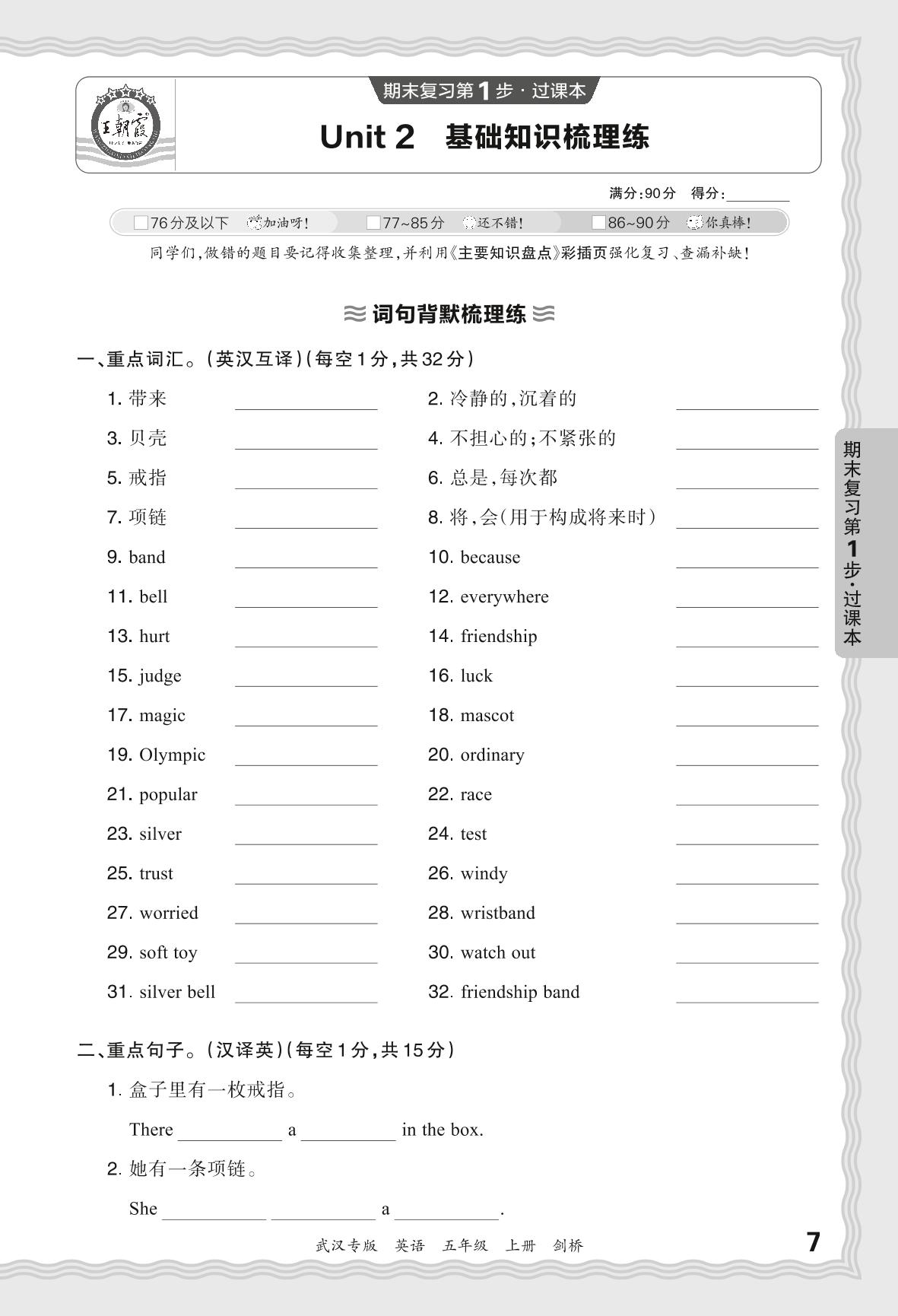 2023秋上册五年级英语剑桥版 期末过课本·Unit 2 基础知识梳理练