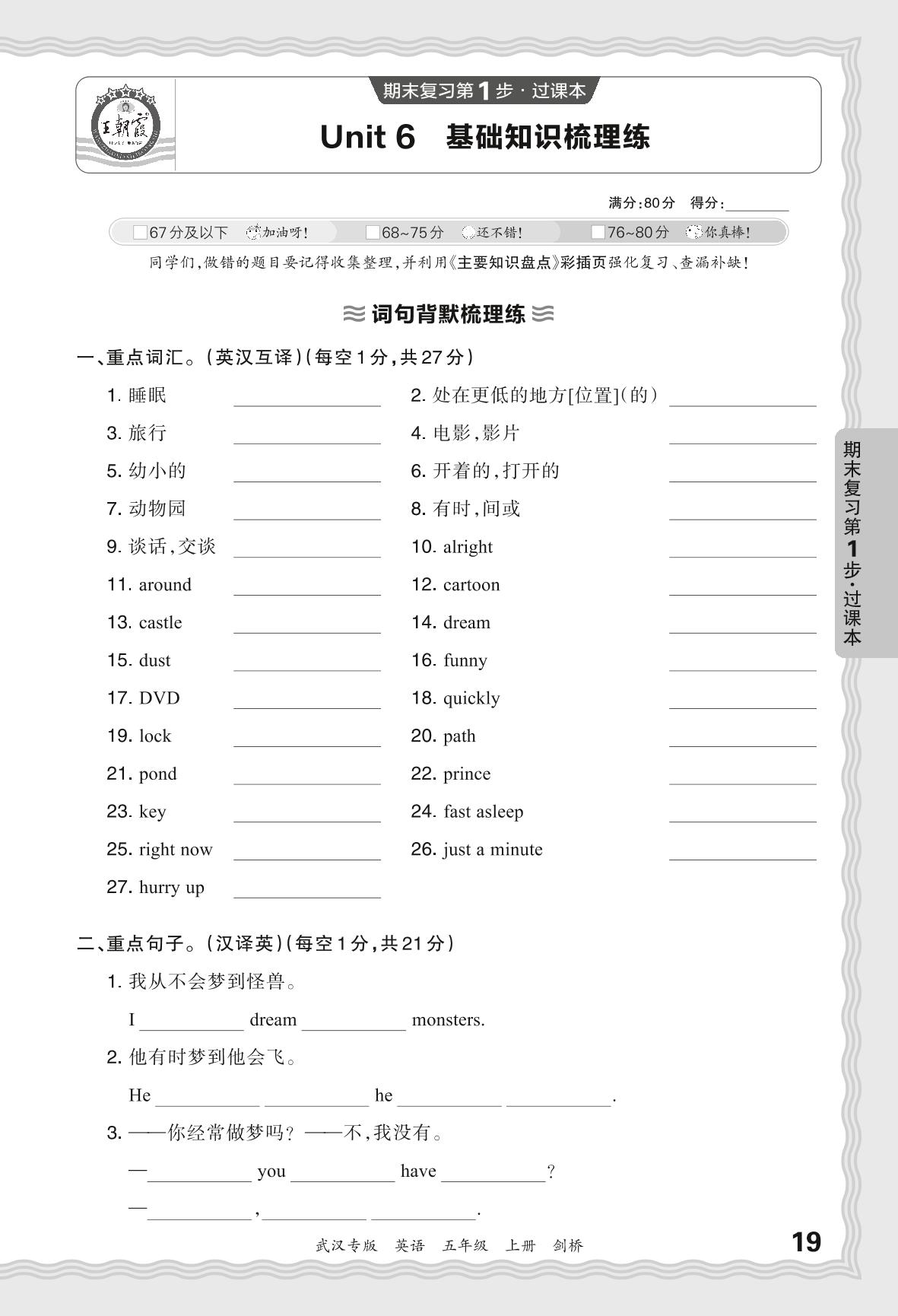 2023秋上册五年级英语剑桥版 期末过课本·Unit 6 基础知识梳理练