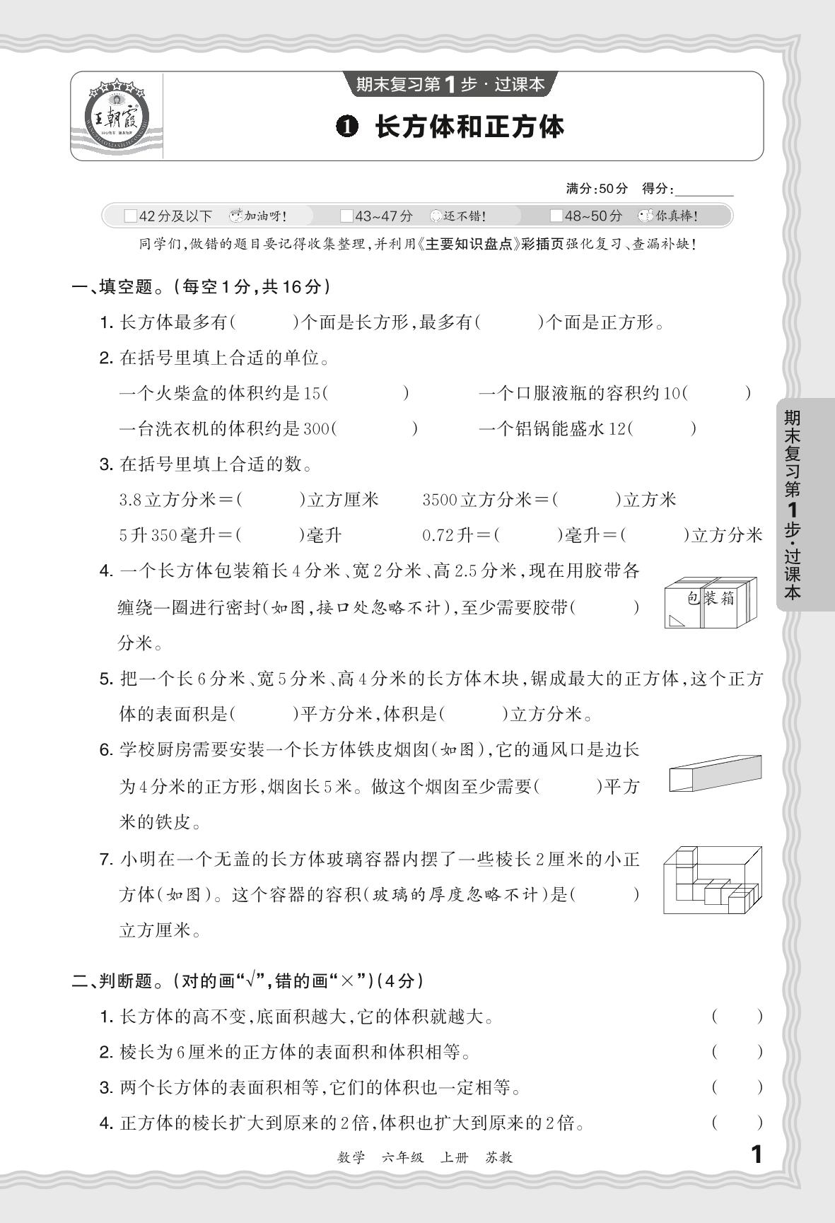 2023秋上册六年级数学苏教版 期末过课本QMB版·长方体与正方体【1】