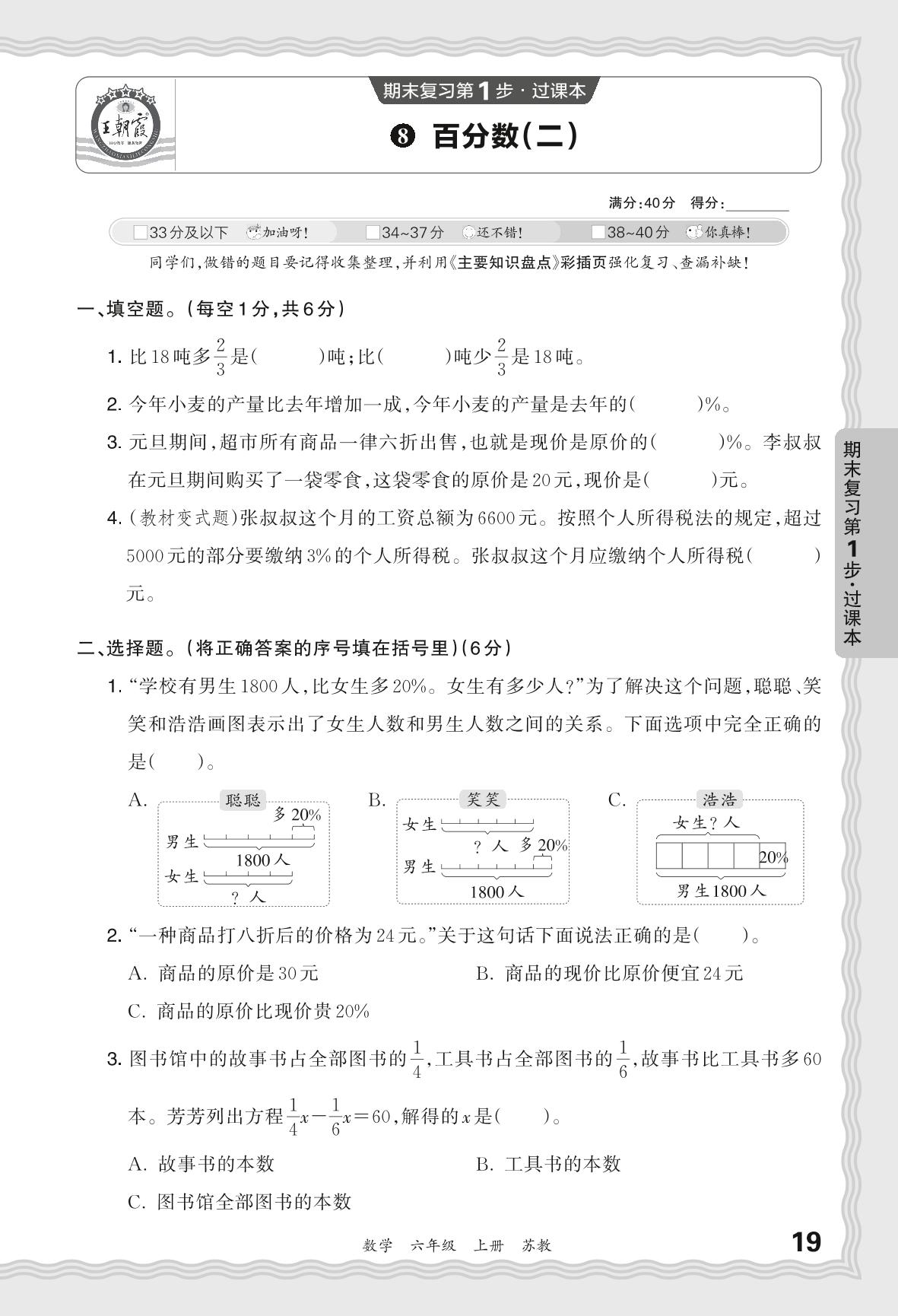 2023秋上册六年级数学苏教版 期末过课本QMB版·百分数(二)【8】
