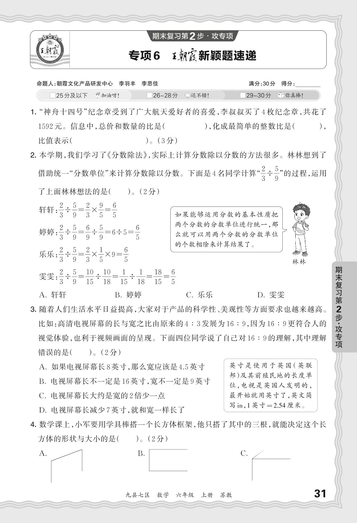 2023秋上册六年级数学苏教版 期末专项卷·王朝霞新颖题速递_R231127141633593【6】