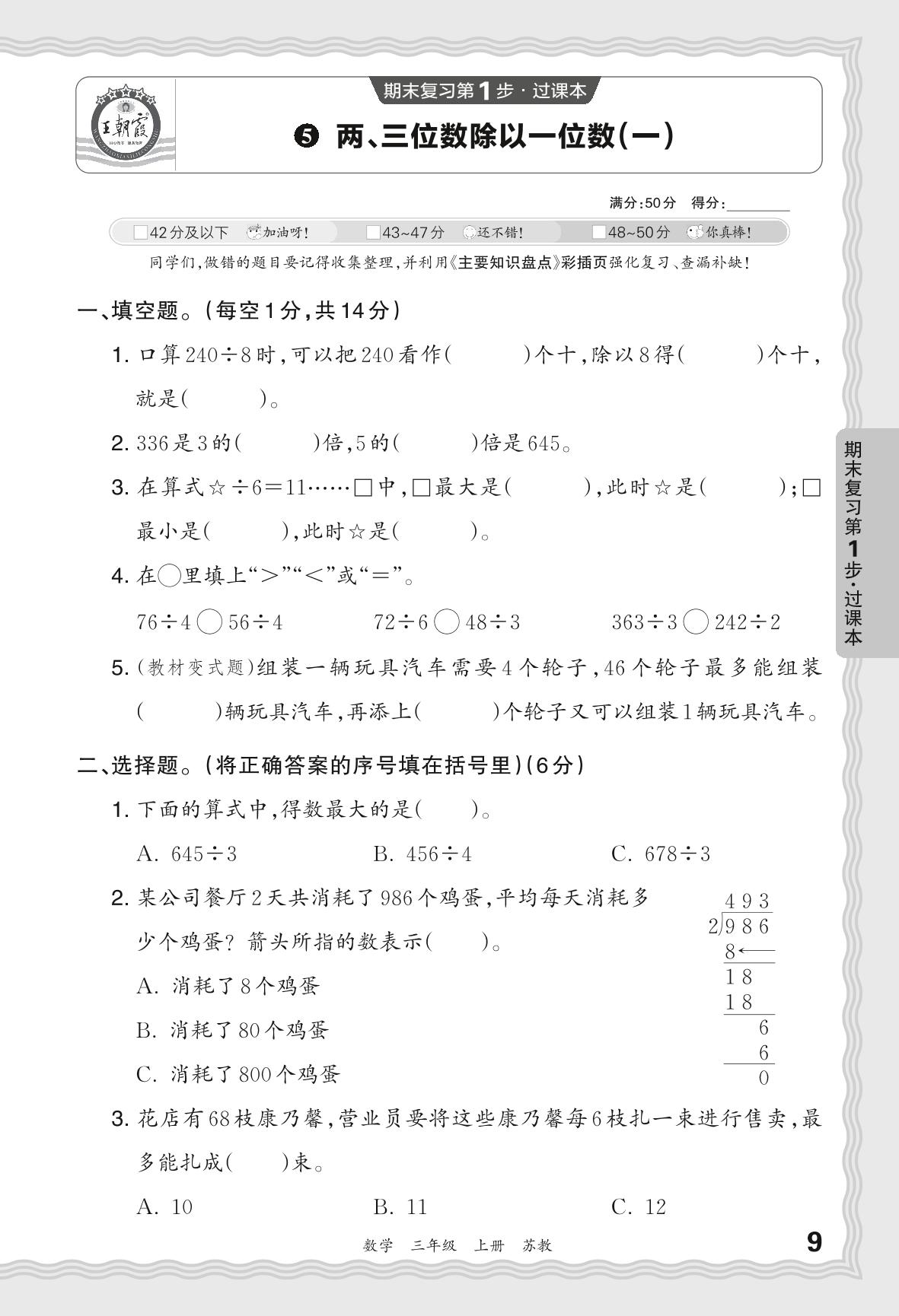2023秋上册三年级数学苏教版 期末过课本QMB版·两、三位数除以一位数(一)【5】