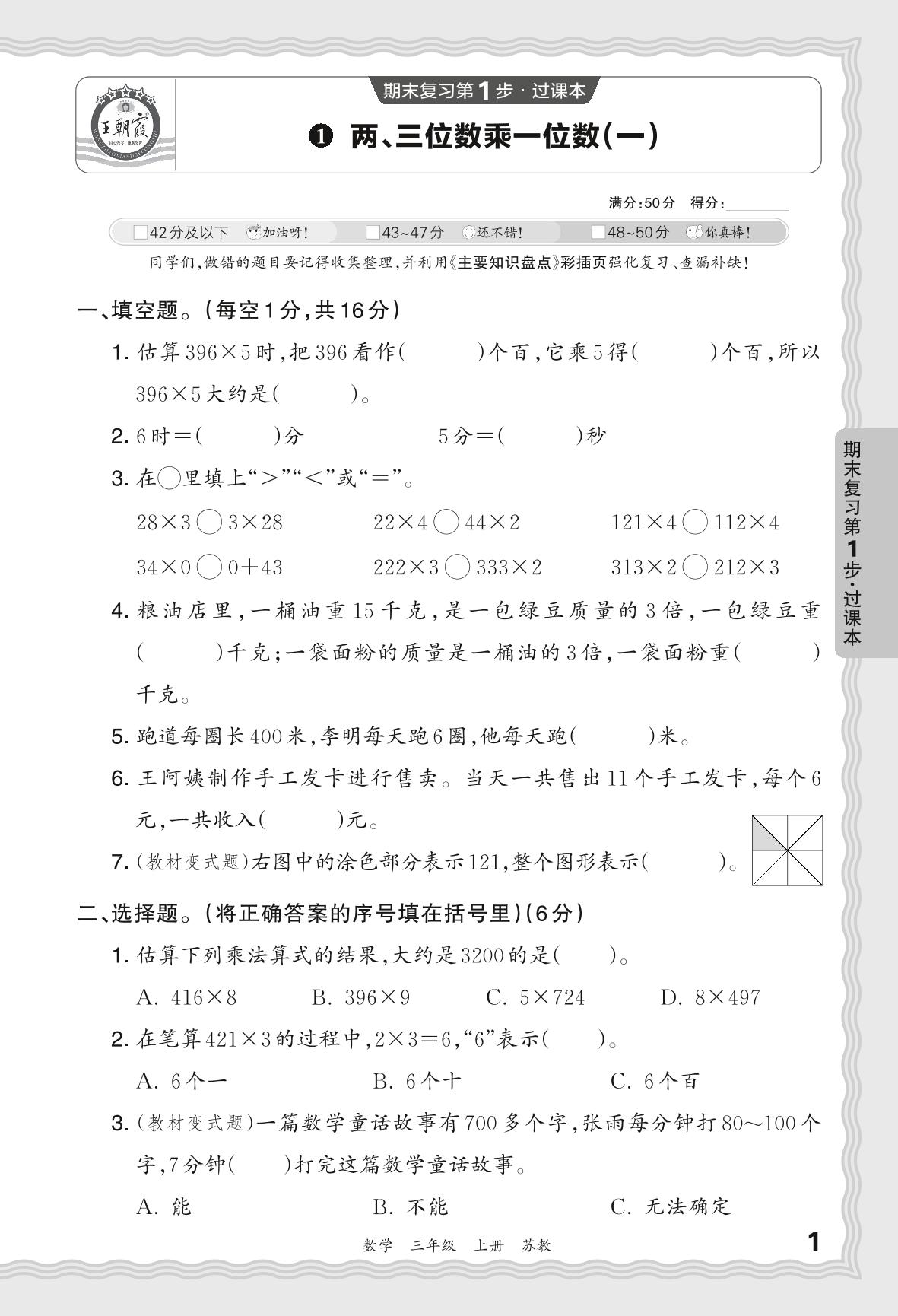 2023秋上册三年级数学苏教版 期末过课本QMB版·两、三位数乘一位数(一)【1】