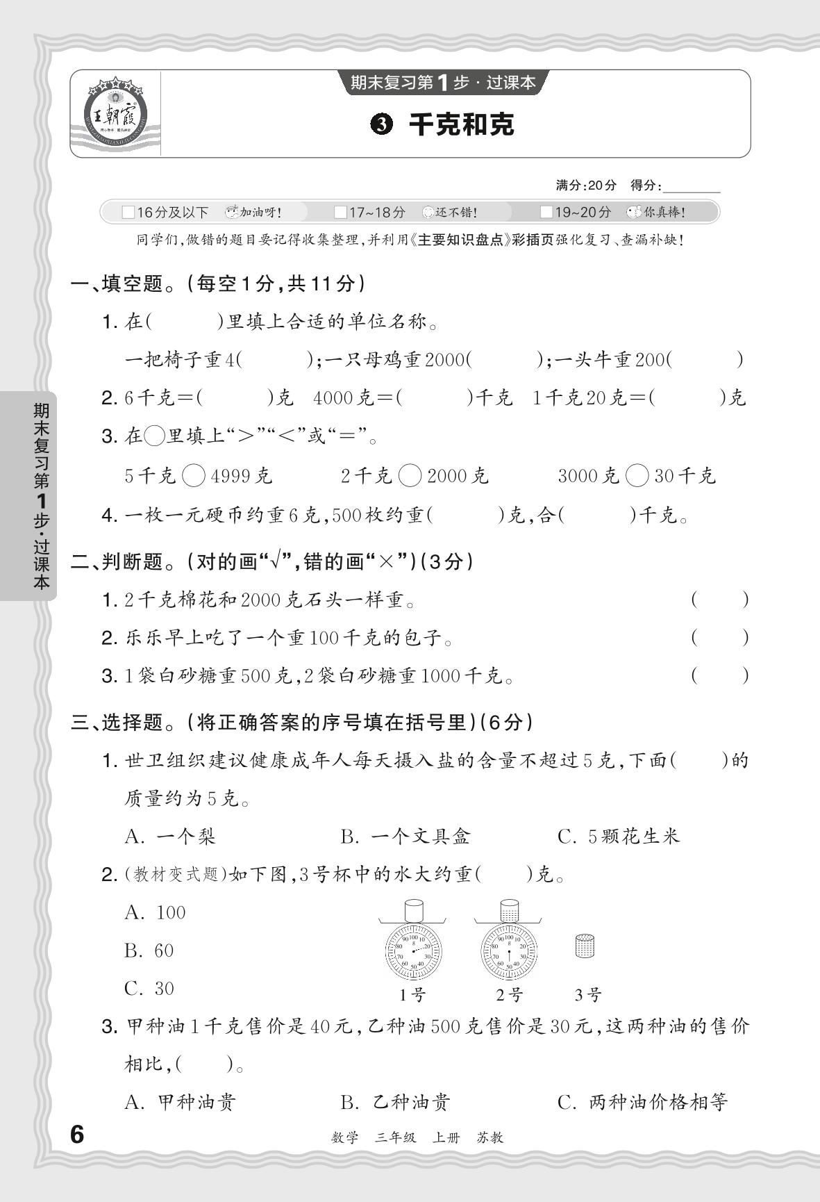 2023秋上册三年级数学苏教版 期末过课本QMB版·千克和克【3】