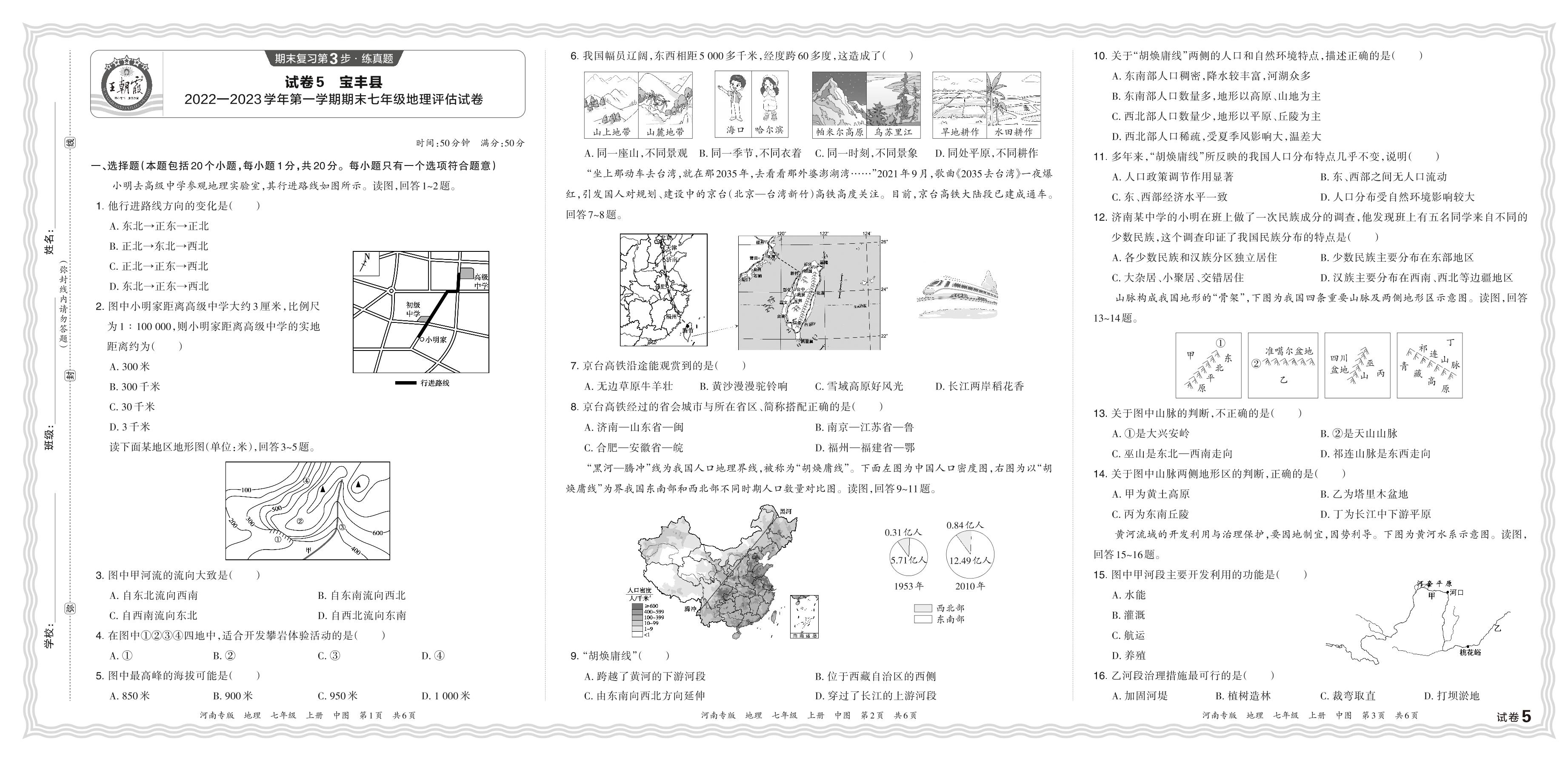河南省平顶山市宝丰县2022—2023学年第一学期期末七年级地理评估试卷(中图版)【5】