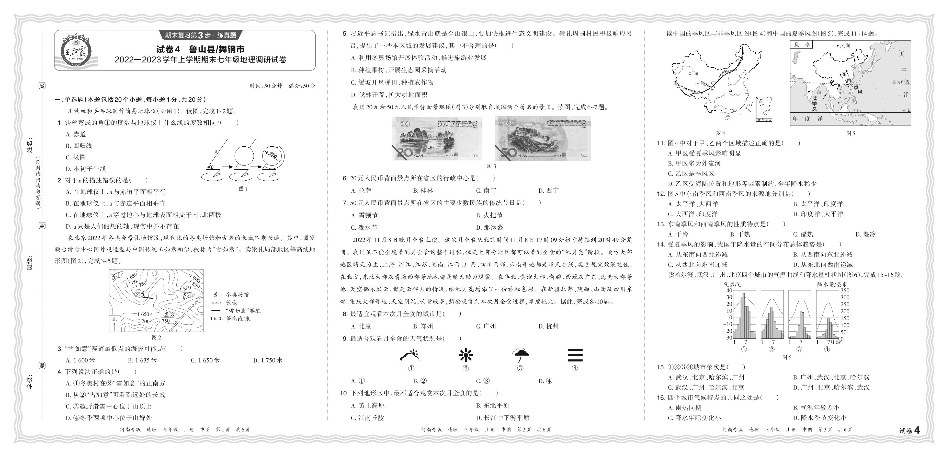 河南省平顶山市鲁山县、舞钢市2022—2023学年上学期期末七年级地理调研试卷(中图版)【4】