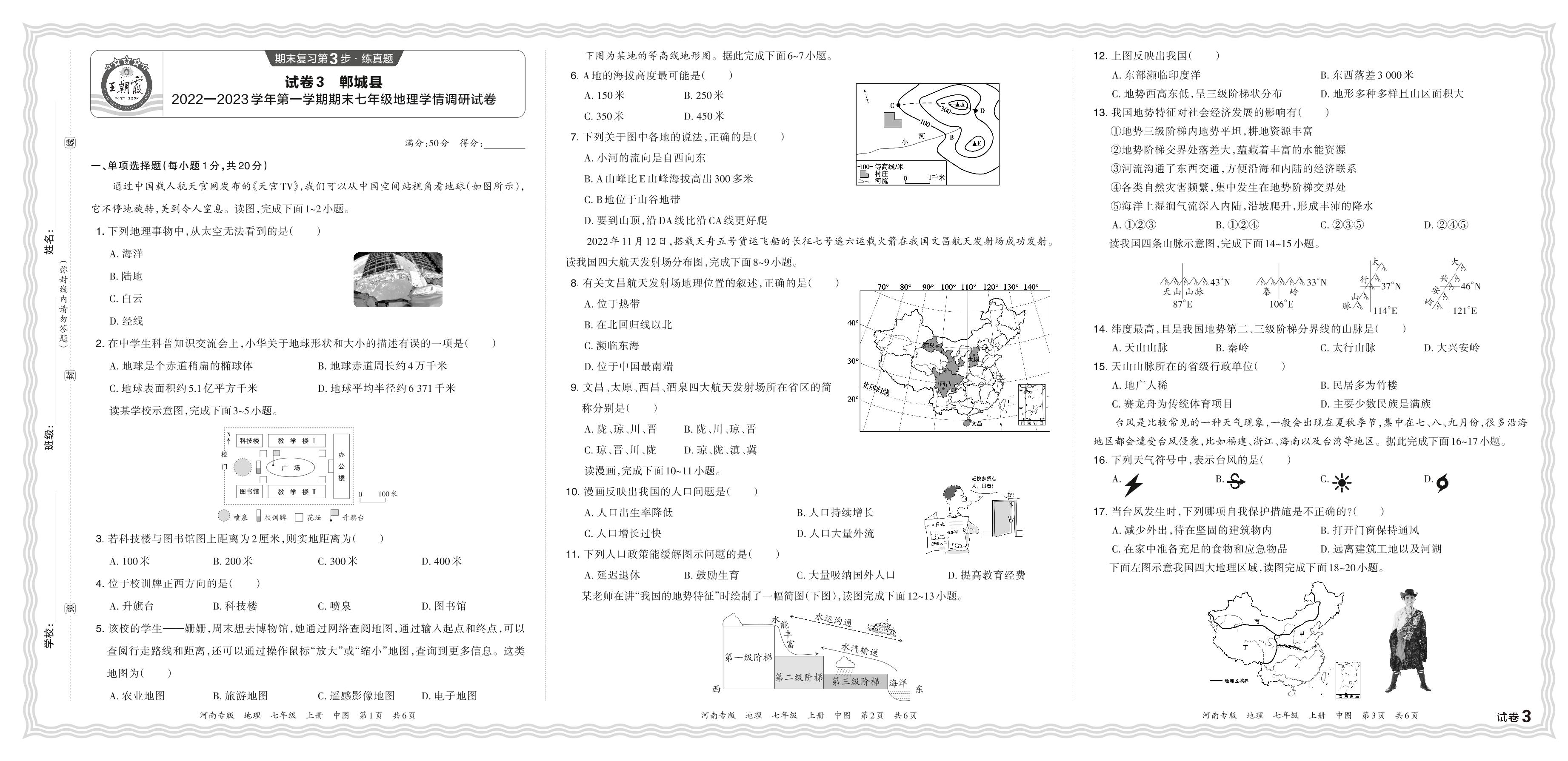 河南省周口市郸城县2022—2023学年第一学期期末七年级地理学情调研试卷(中图版)【3】